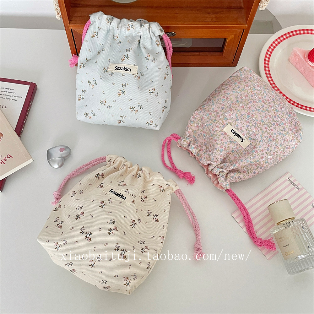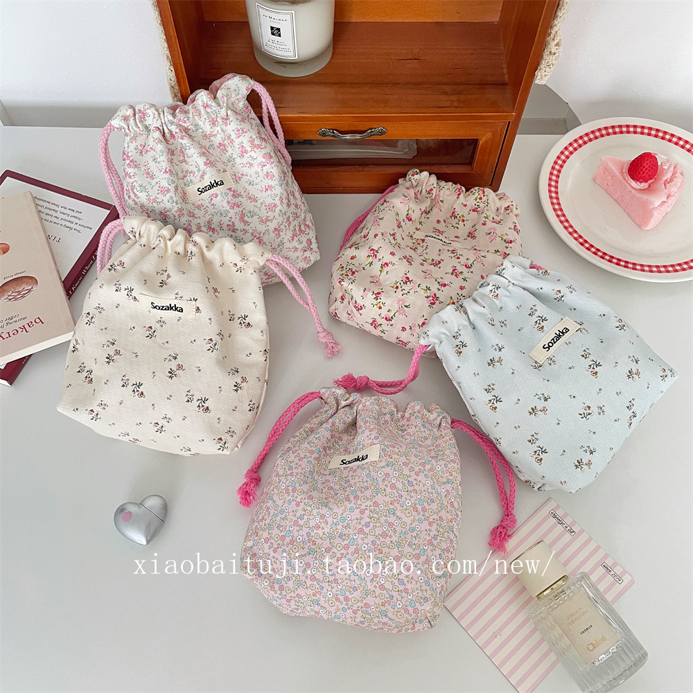 小白兔几韩系碎花收纳袋便携化妆品收纳包旅行零钱杂物收纳整理袋