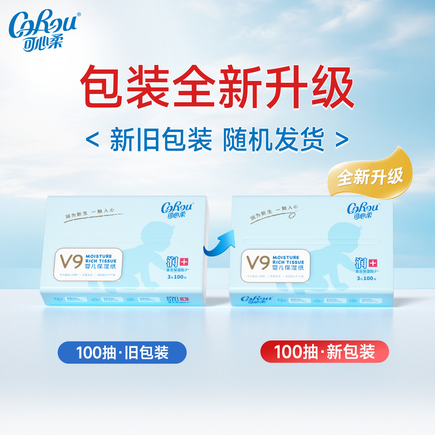 可心柔V9婴儿柔纸巾宝宝专用超柔抽纸云柔巾100抽48包 发4箱12包