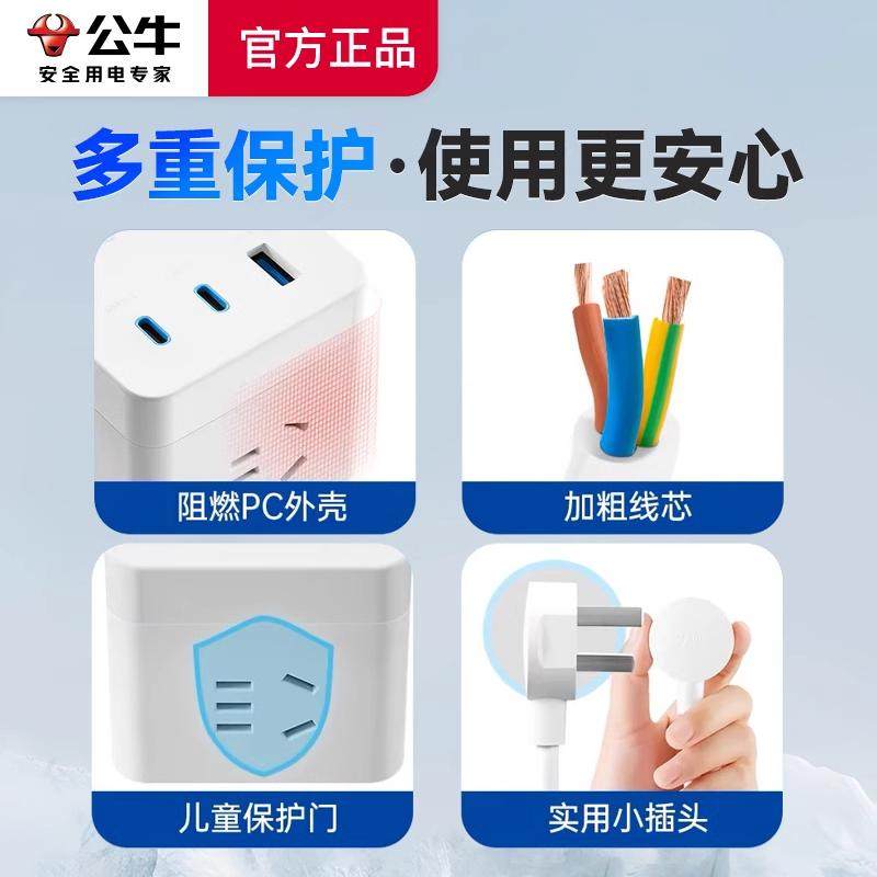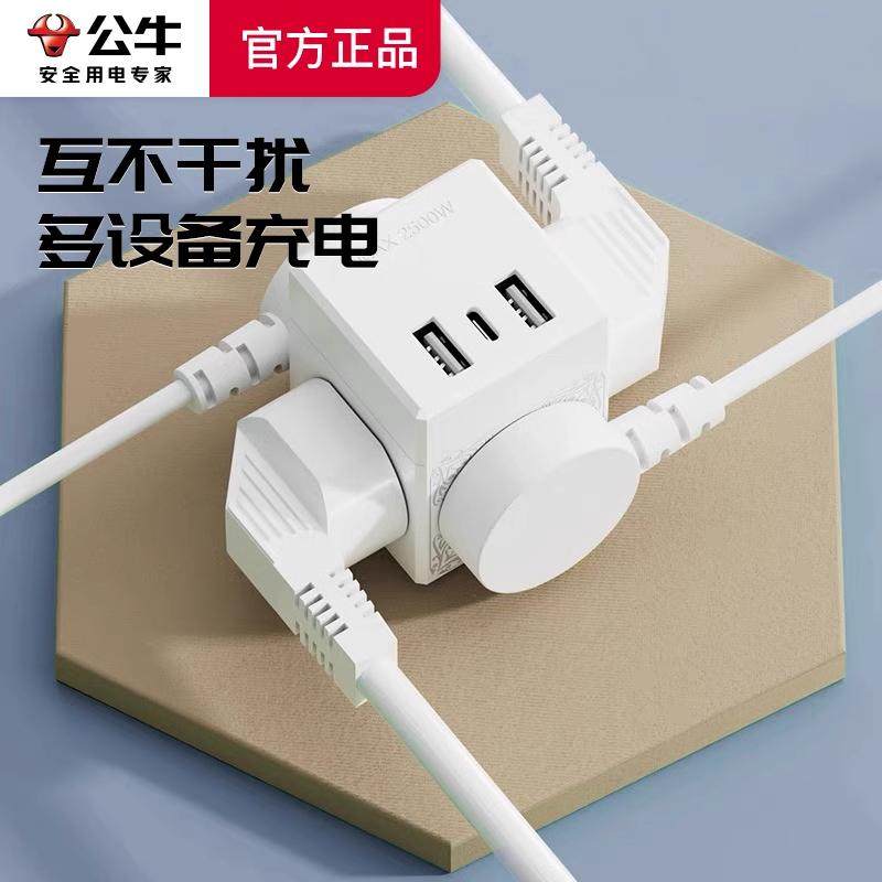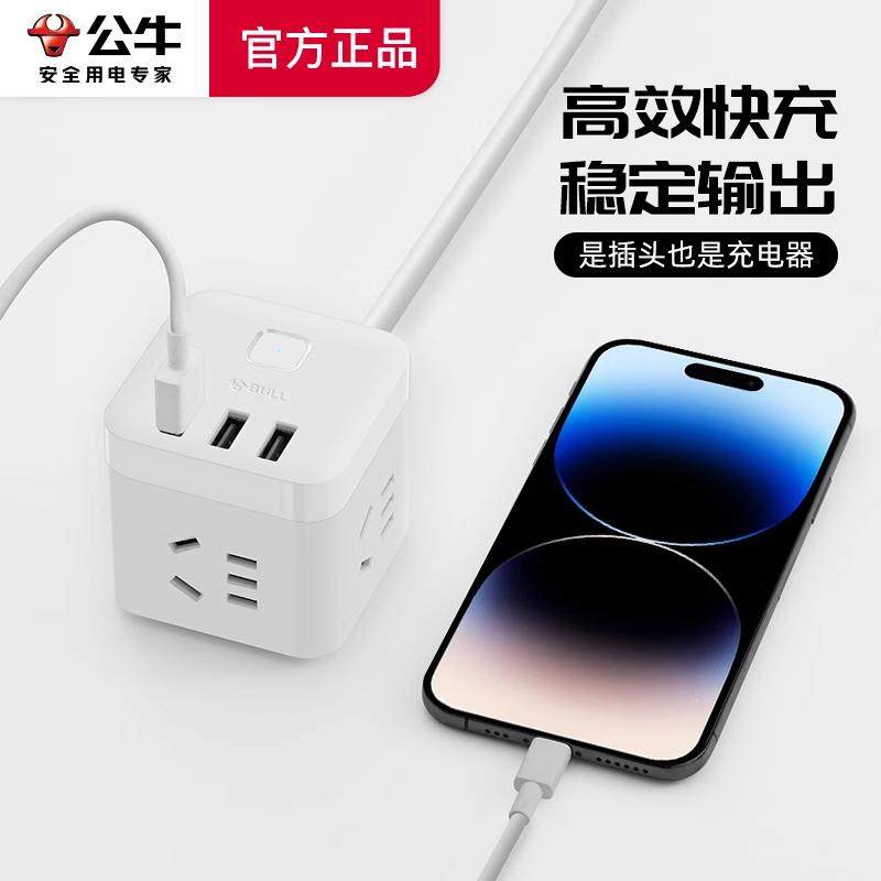 公牛魔方插座快充插线板公牛插座插排插线板usb快充插座转换器