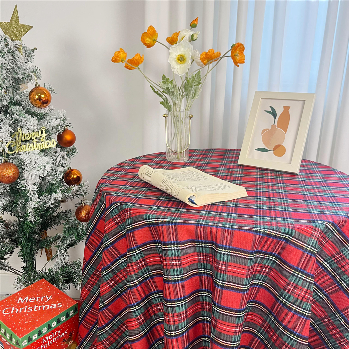 圣诞节桌布ins风高级感复古氛围感餐桌垫红色格子桌垫圣诞风装饰