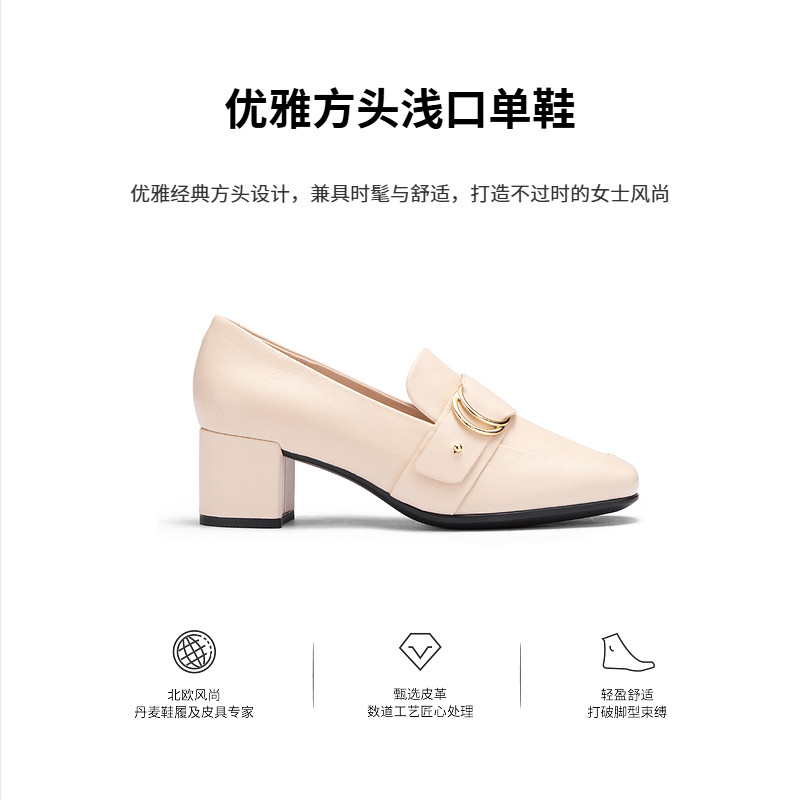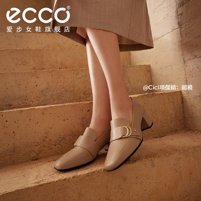 ECCO爱步乐福鞋女鞋 高跟鞋英伦风一脚蹬小皮鞋单鞋 型塑290953