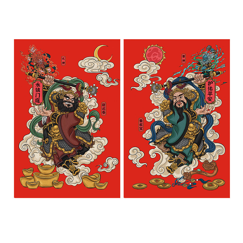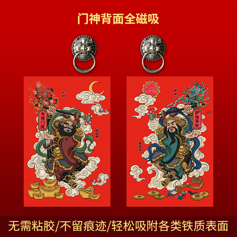 门神贴磁吸2026新款马年家用防盗门入户门春节新年镇宅秦叔宝年画