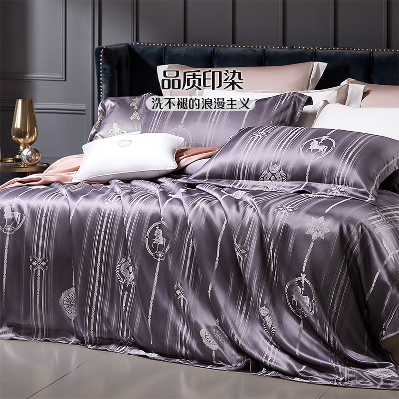富安娜家纺轻奢提花床单四件套亲肤裸睡酒店民宿床品套件床上用品