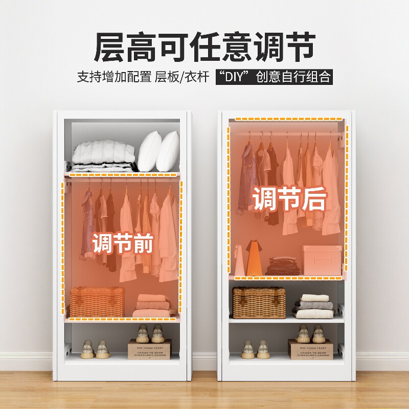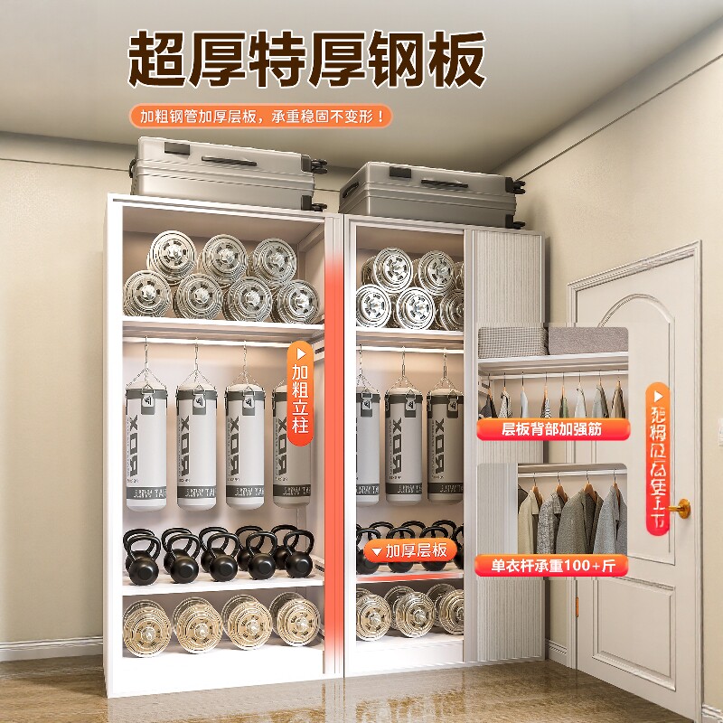 衣柜卧室家用简易组装金属推拉门2025新款钢制货架全封闭收纳衣架