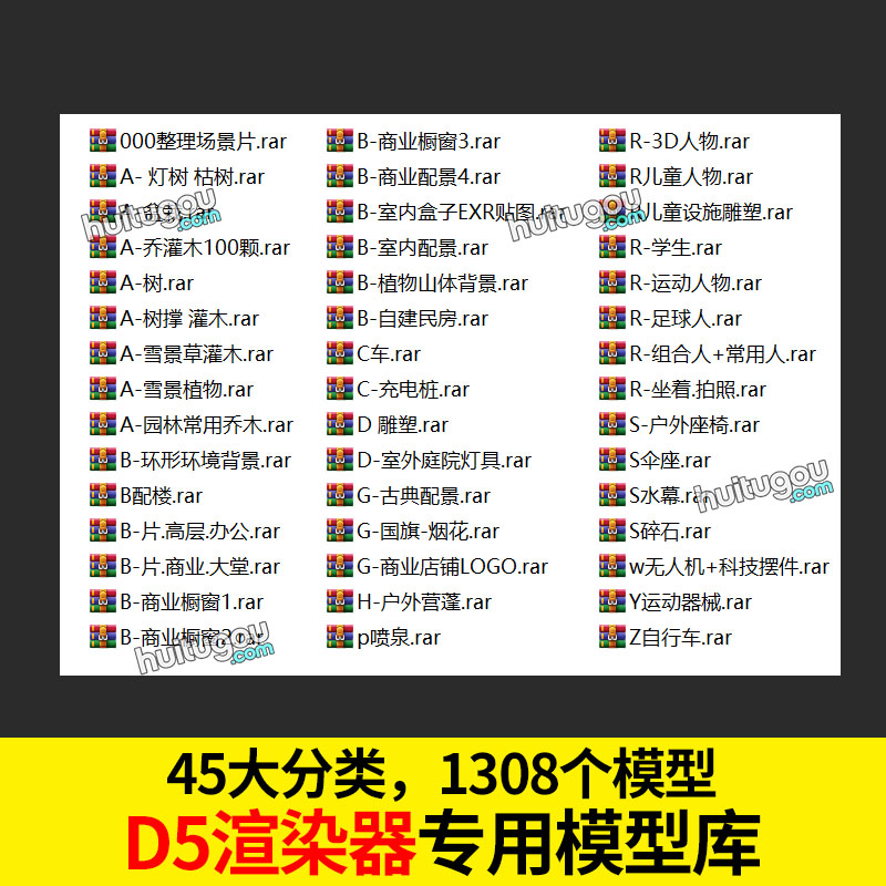 D5渲染器本地素材库 分类模型库 树木橱窗喷泉人物户外座椅园林等