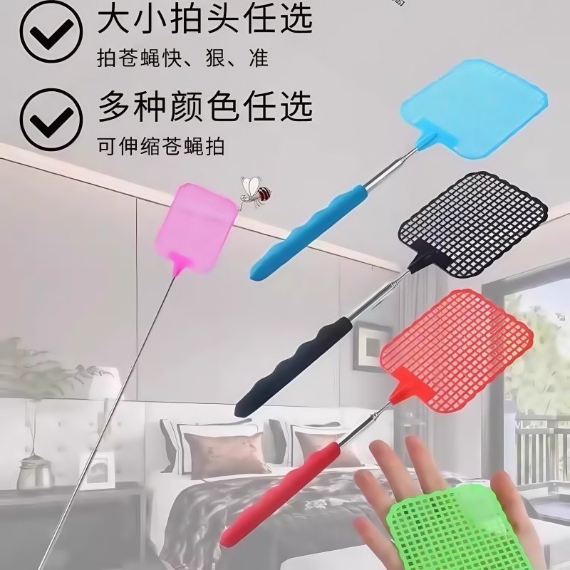 家用可伸缩苍蝇拍创意加长柄灭蚊拍加厚迷你多功能不锈钢驱蚊拍子