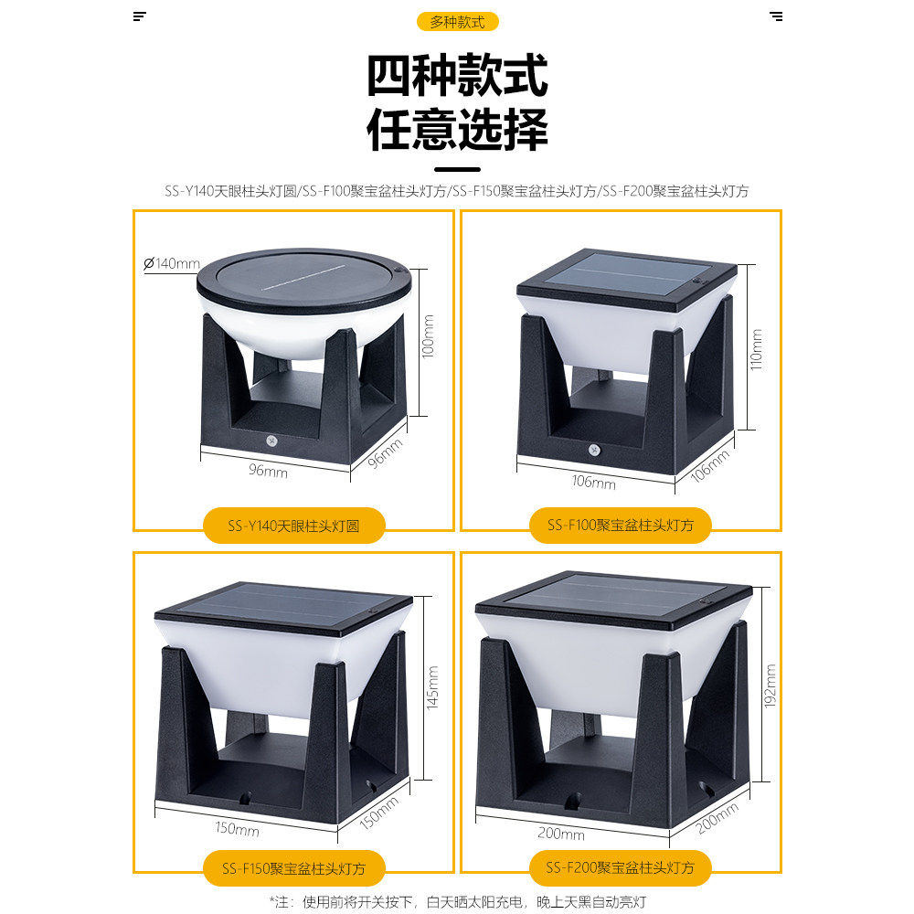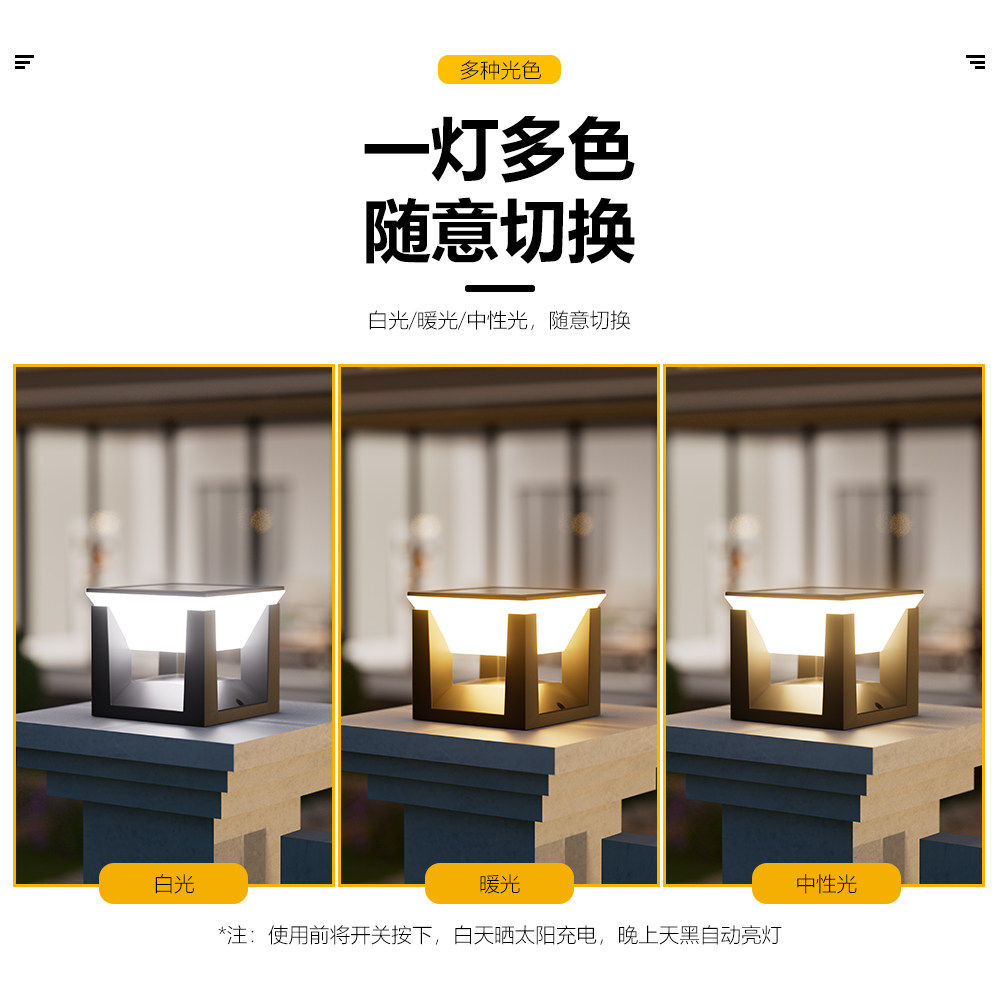 太阳能柱头灯户外庭院灯别墅大门柱子灯草坪灯室外灯防水庭院墙灯