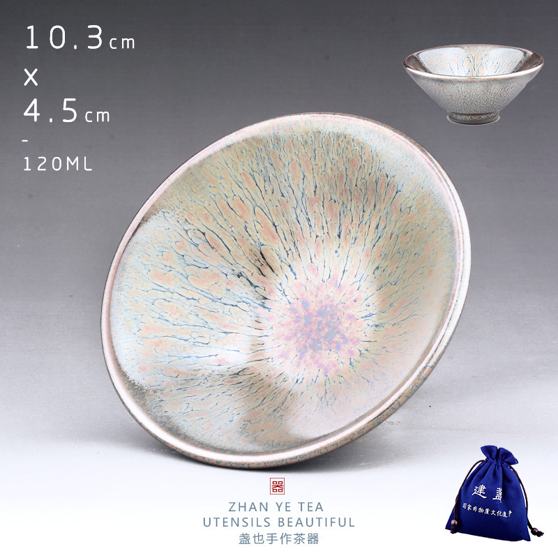 百花建盏主人杯斗笠杯大号茶盏高端建窑建盏茶杯曜变天目盏杯茶具
