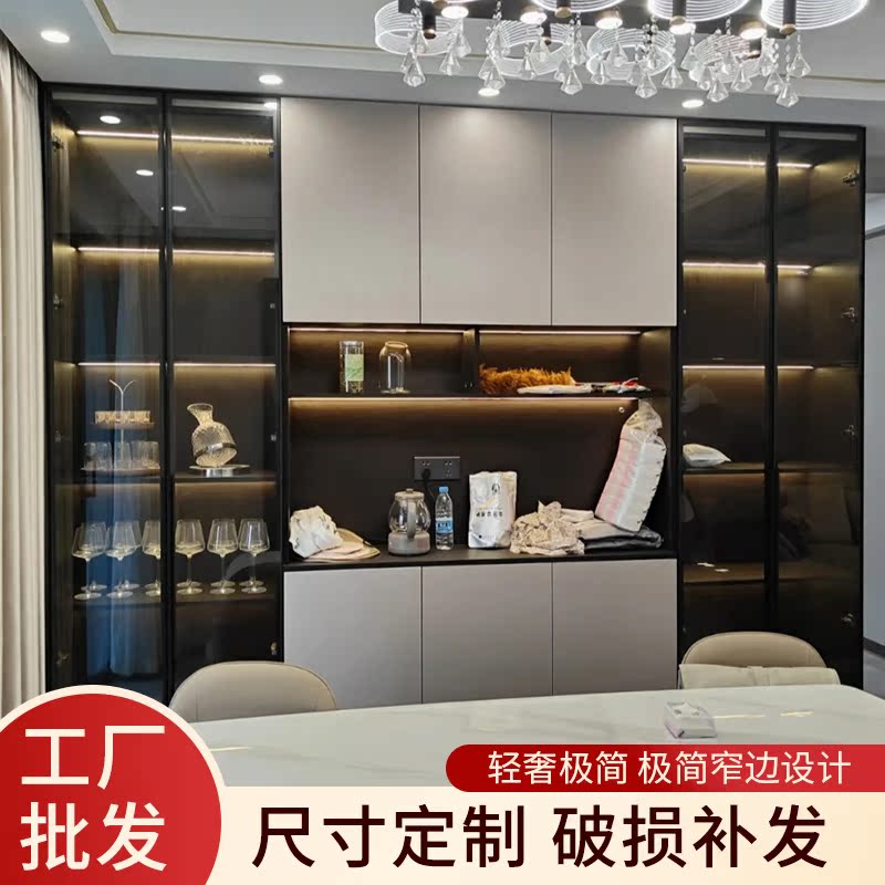 定制极简轻奢窄边铝合金酒柜衣柜书柜子衣帽间橱柜钢化玻璃门定做