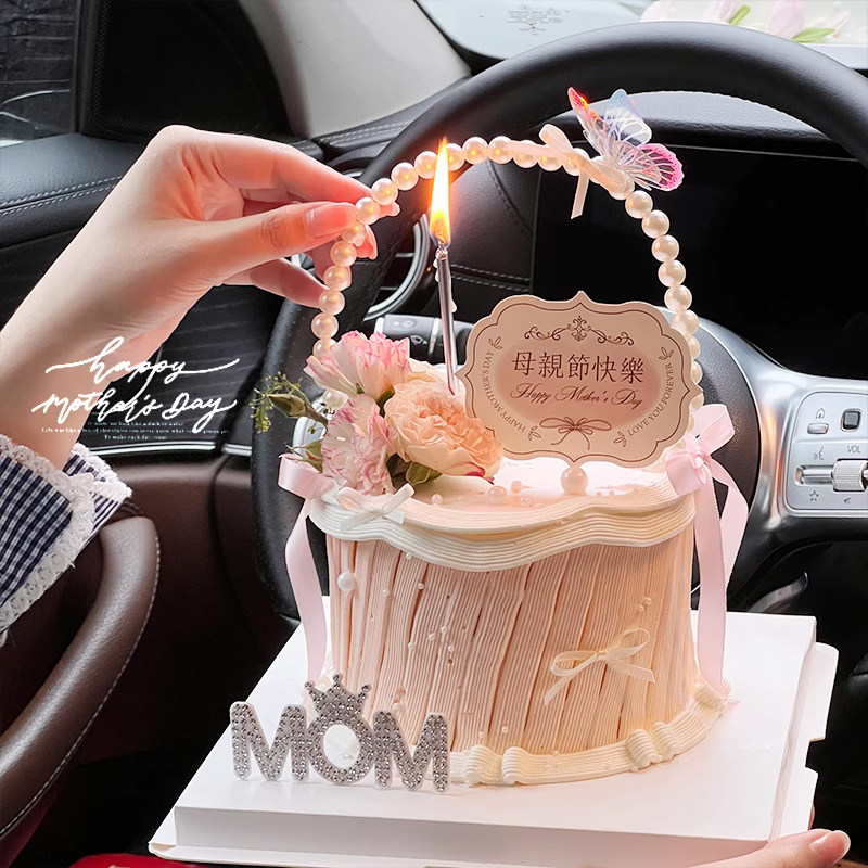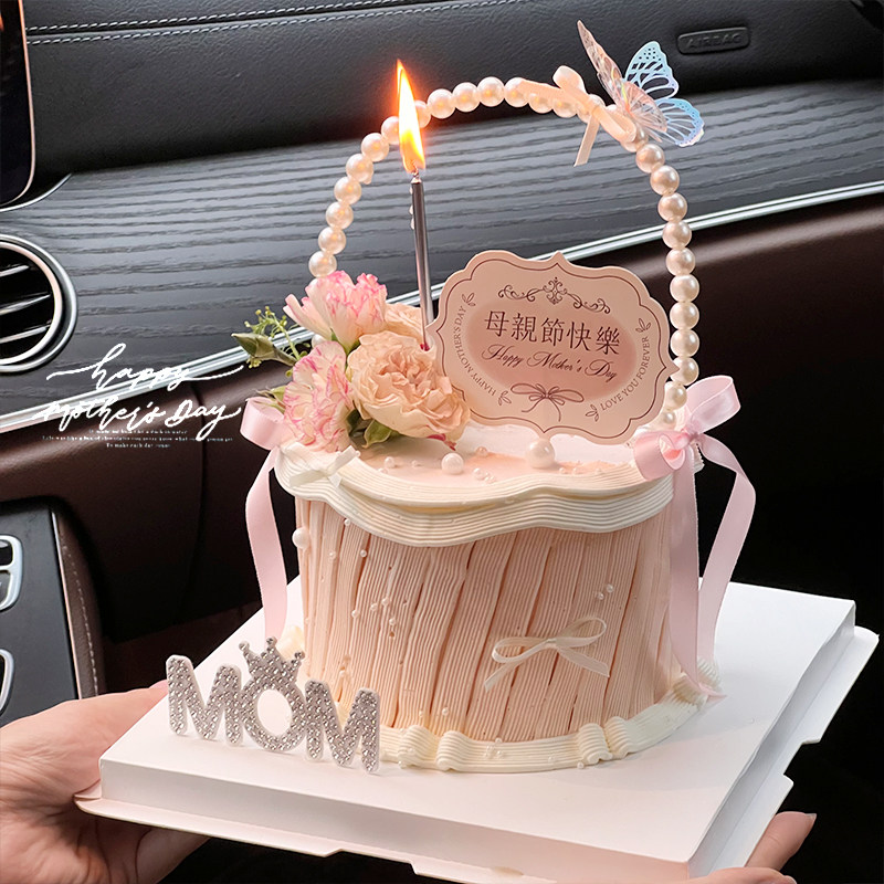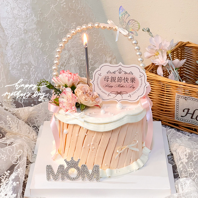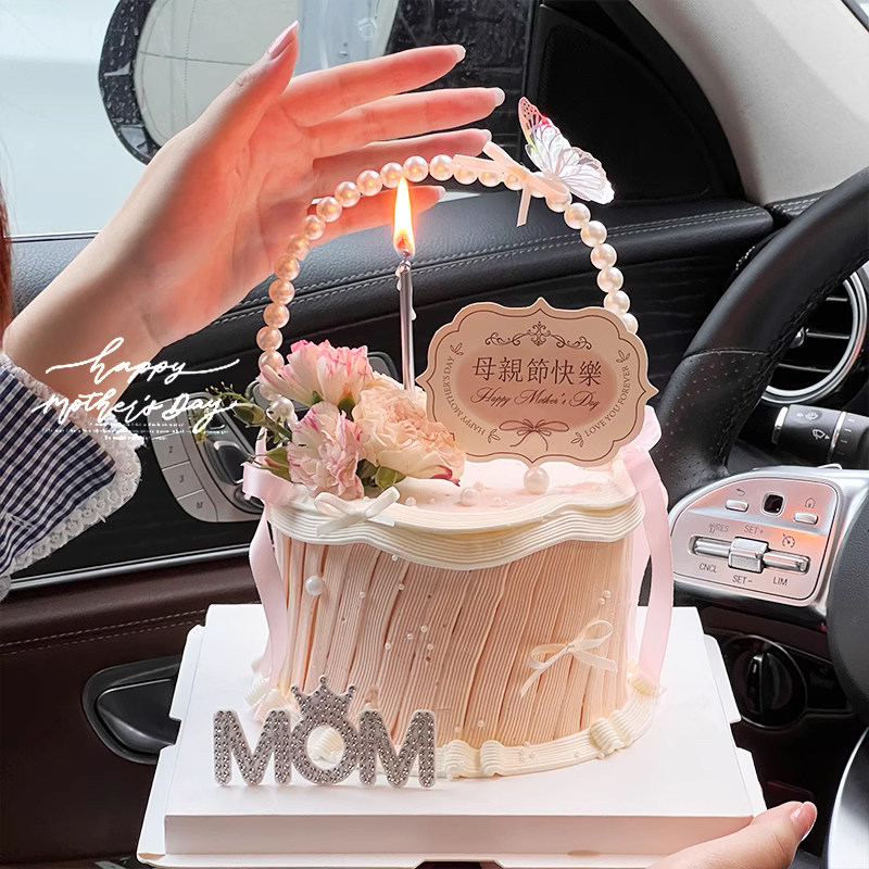 2026母亲节珍珠花篮蛋糕装饰品摆件妈妈节日快乐唯美钻石MOM插件