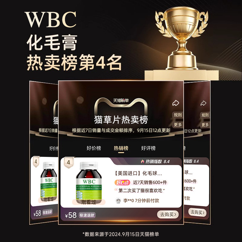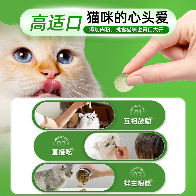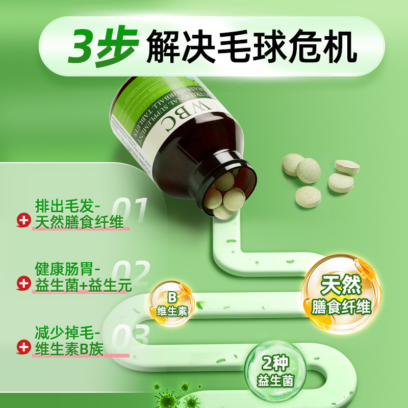WBC猫草片猫咪专用植物温和排毛吐毛球营养维生素化毛膏化毛球片