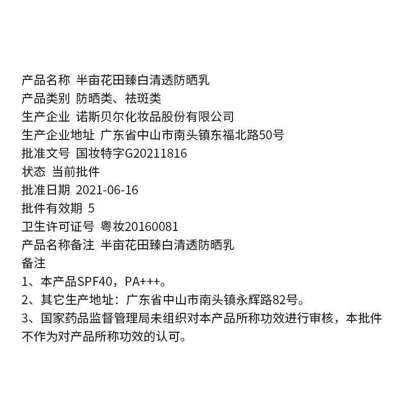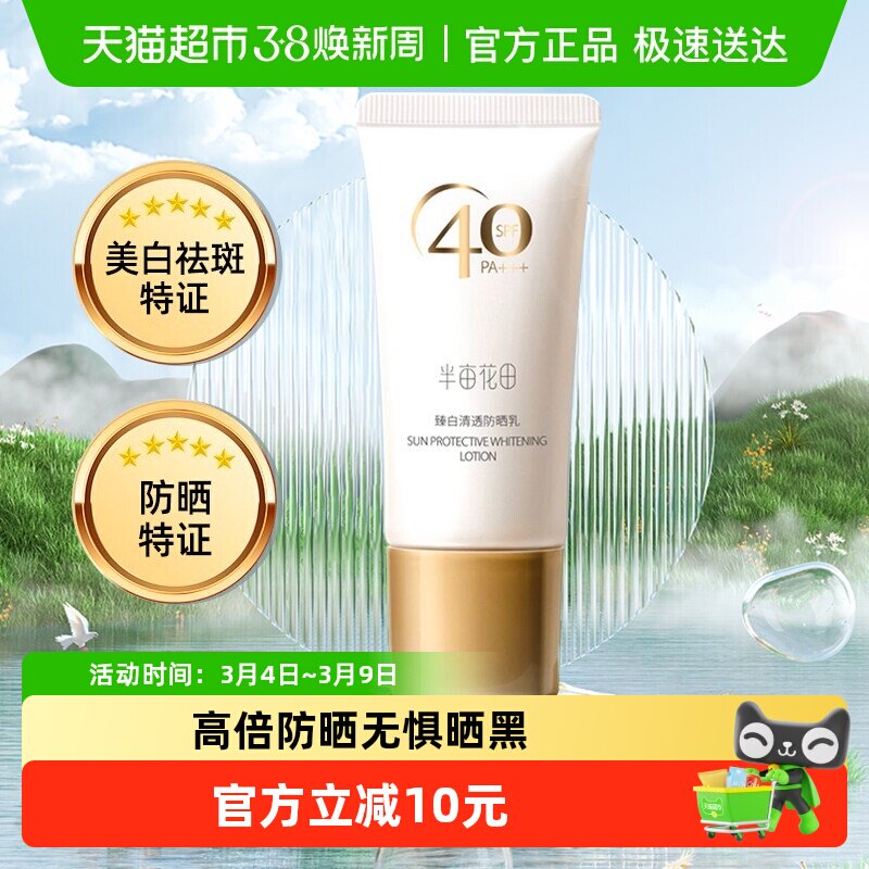 半亩花田臻白清透防晒乳霜SPF40+面部隔离清爽不油腻清爽滋润男女