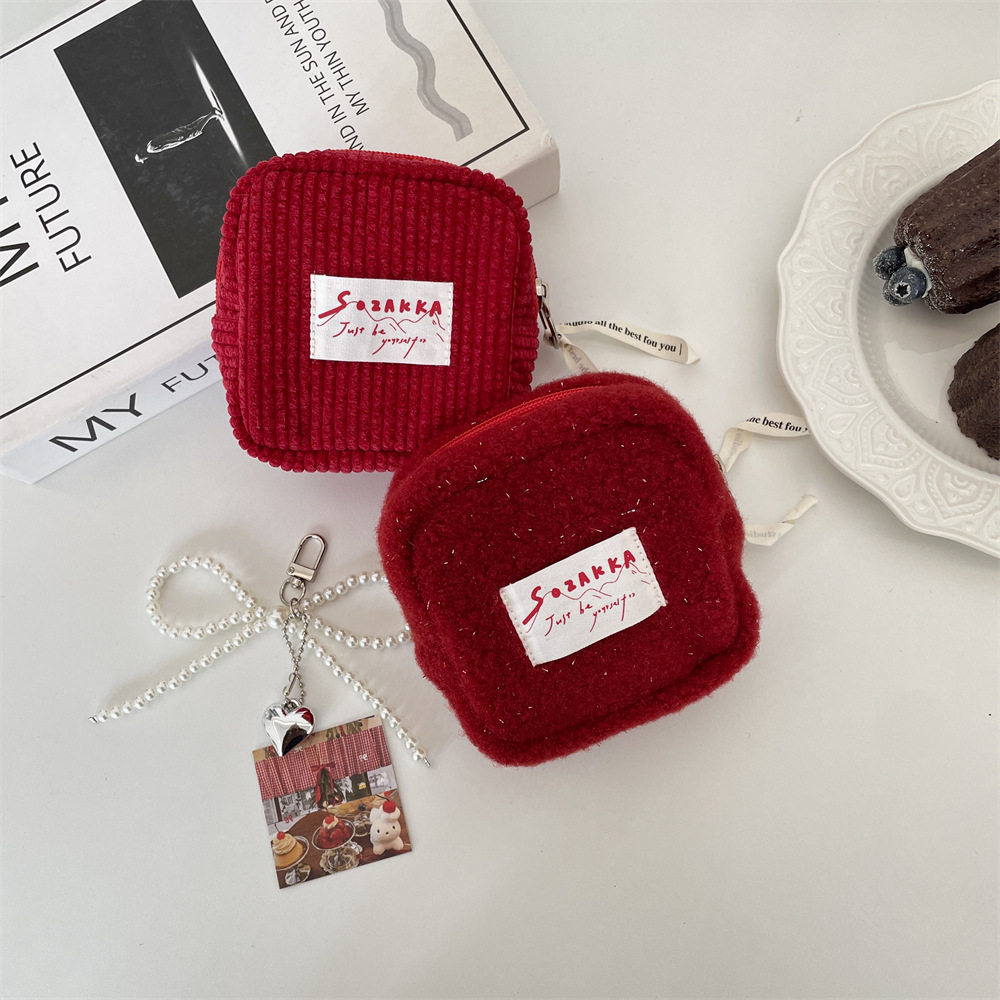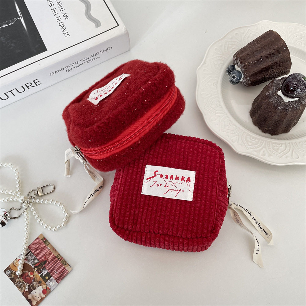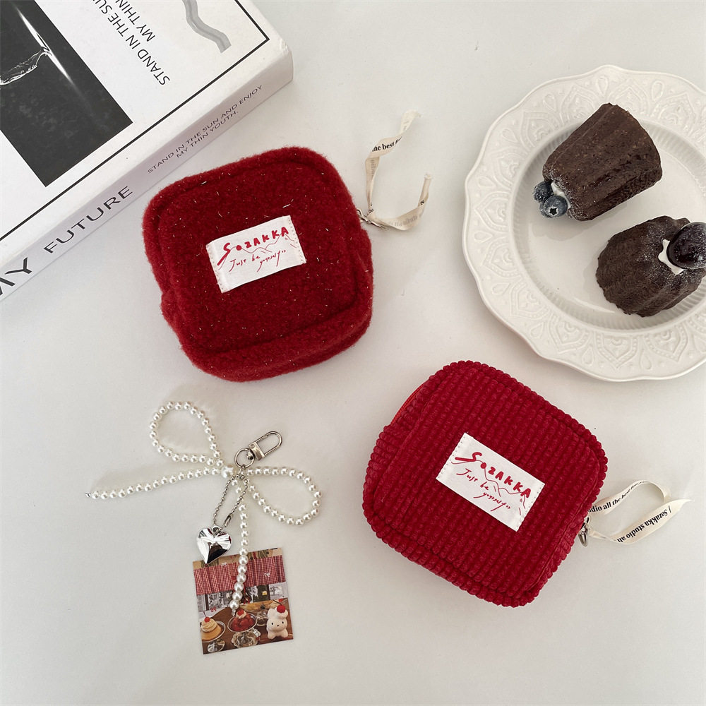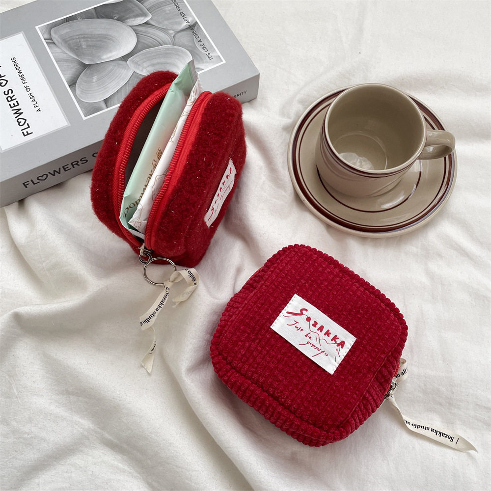 简约毛绒纯色收纳袋学生便携生理期卫生巾整理包女卫生包