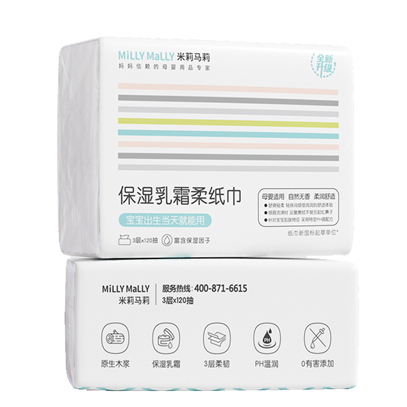 U先试用 米莉马莉母婴保湿乳霜柔纸巾120抽大包手口云柔巾宝宝