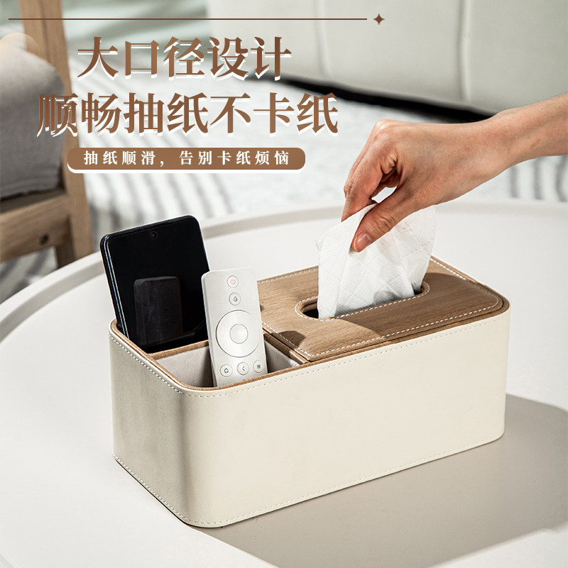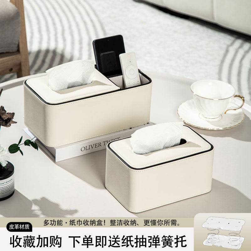 轻奢皮革纸巾盒多功能桌面收纳盒客厅茶几抽纸盒家用整理盒定制
