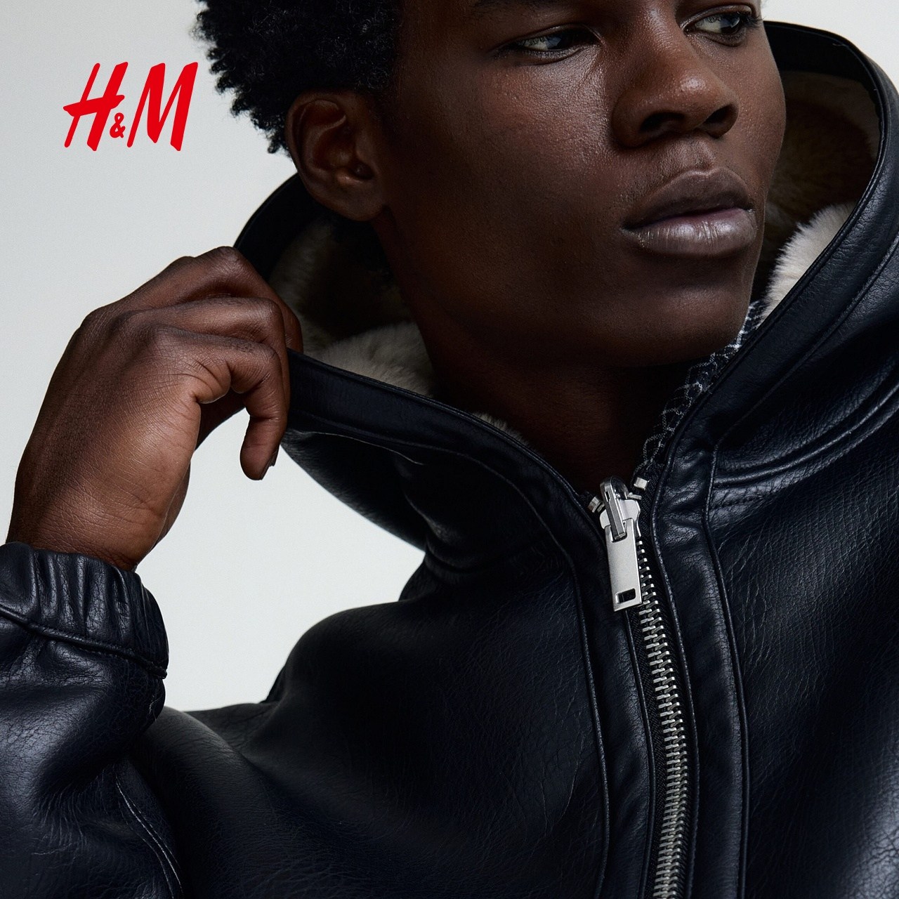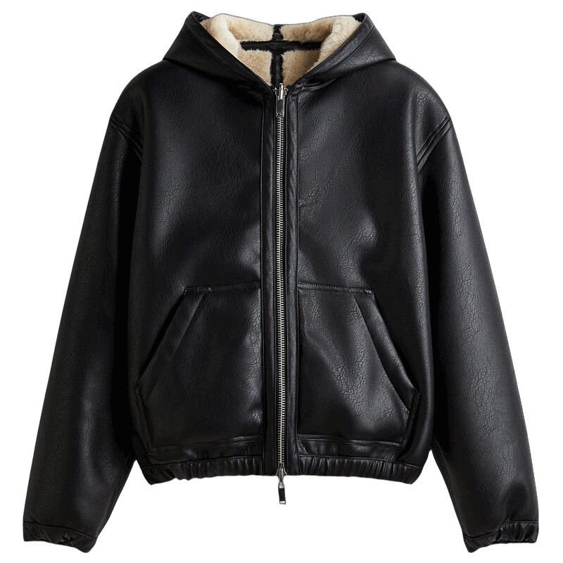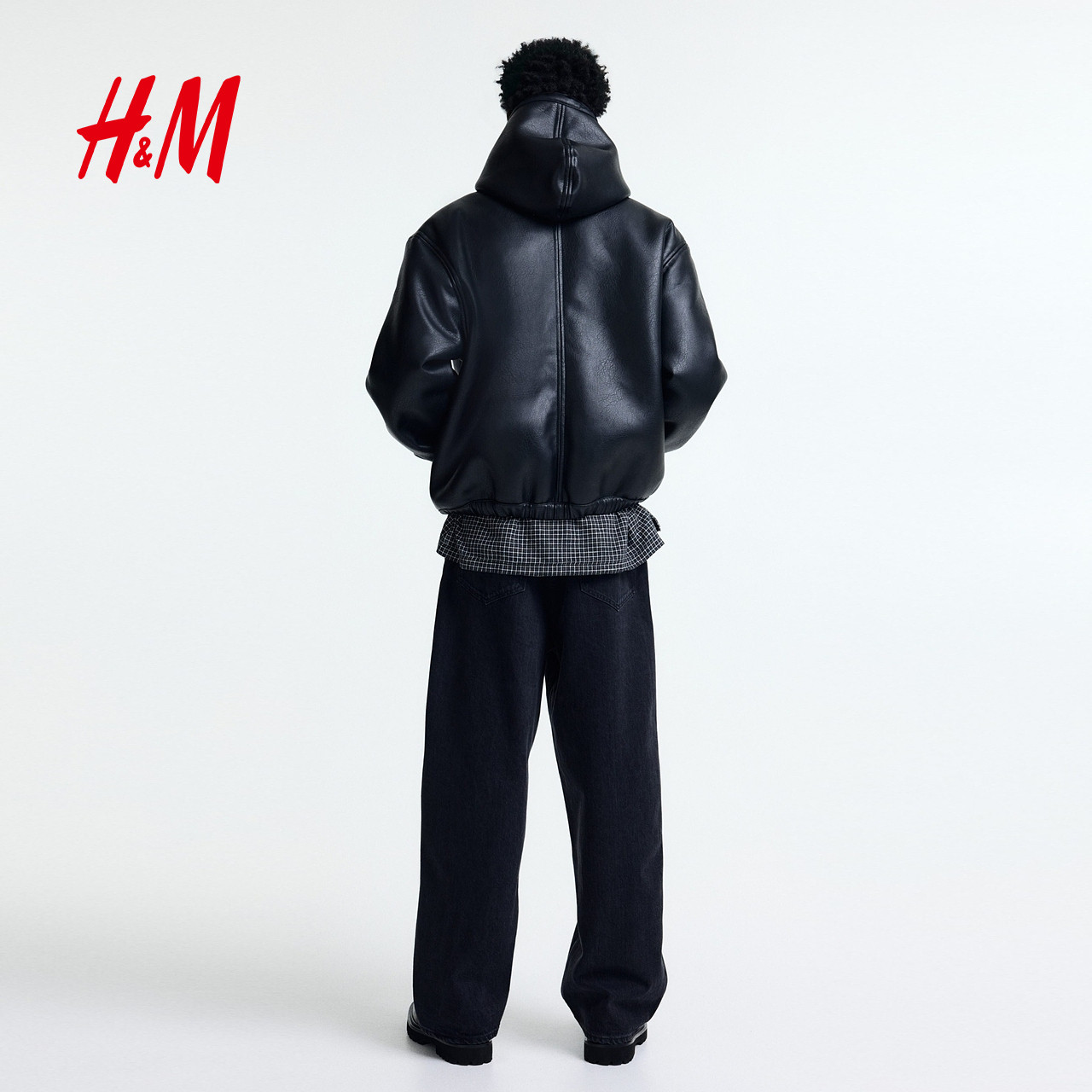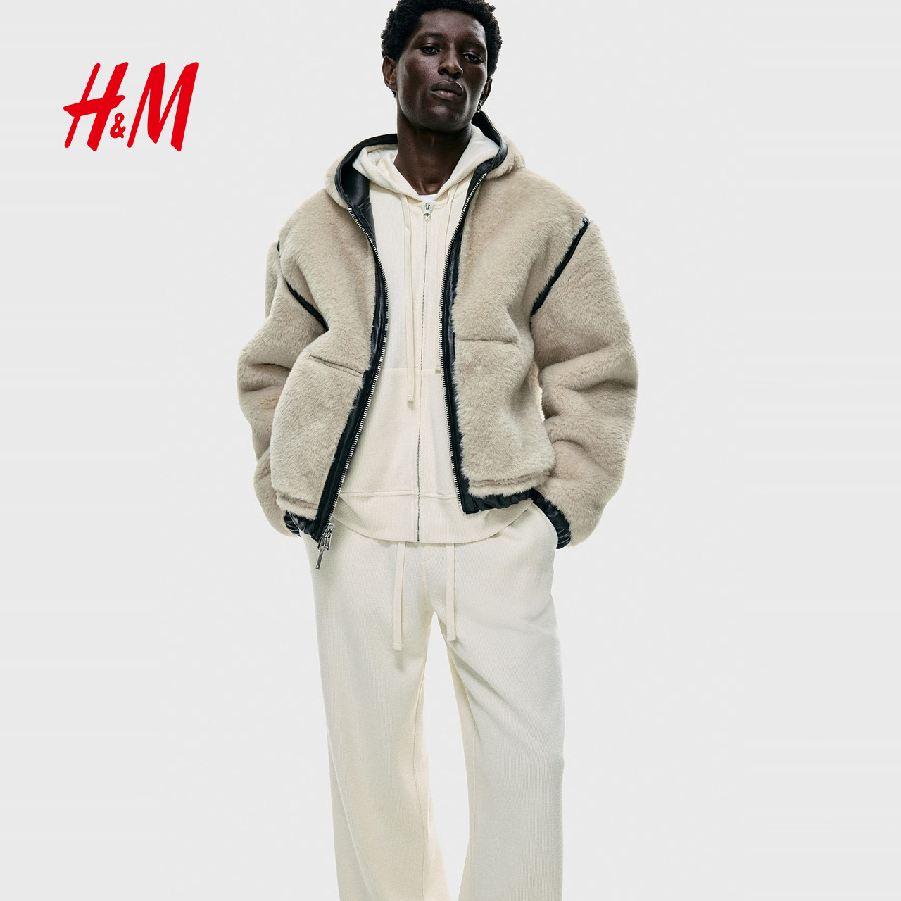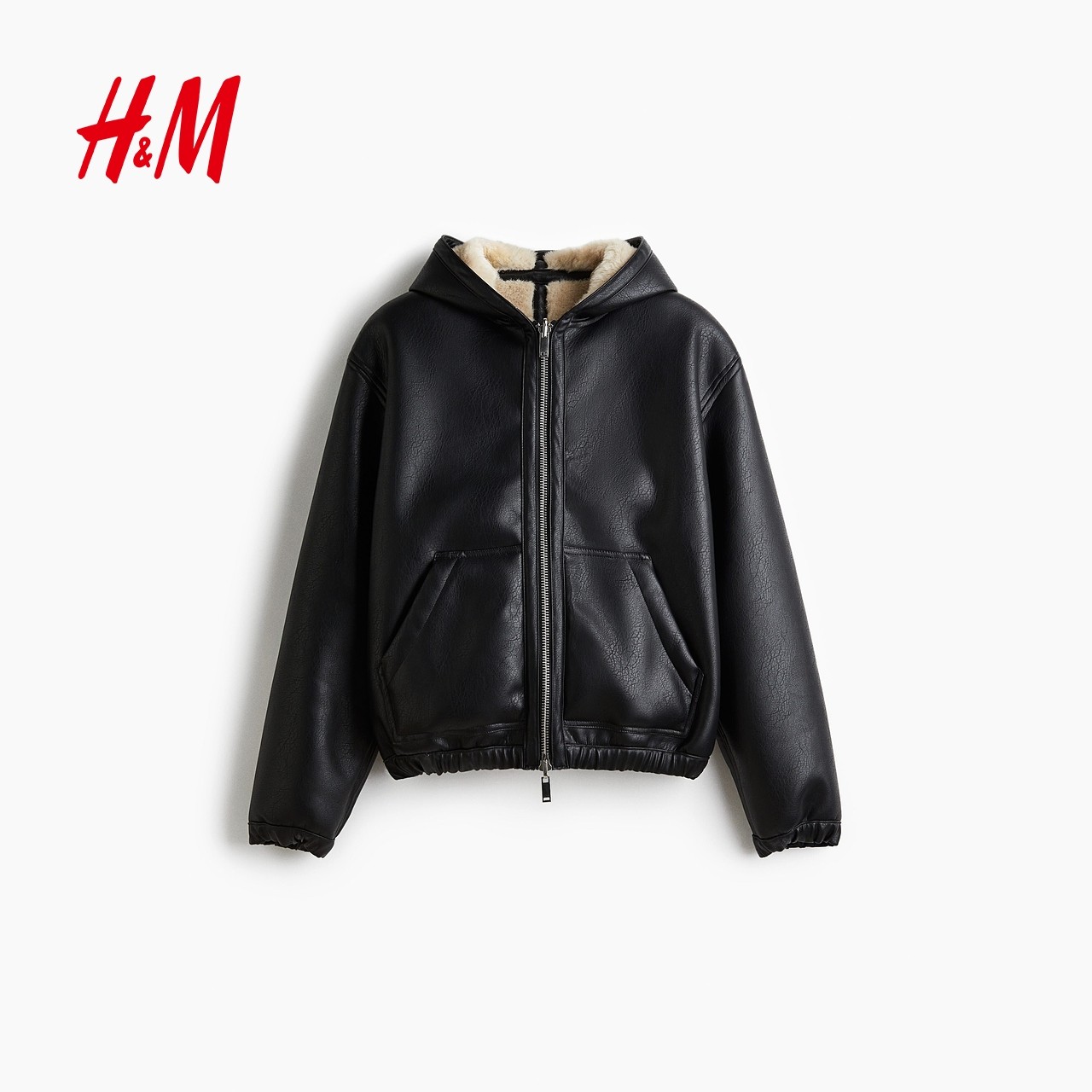 HM男装夹克冬季双面可穿户外保暖仿皮草冬装飞行员外套1295943