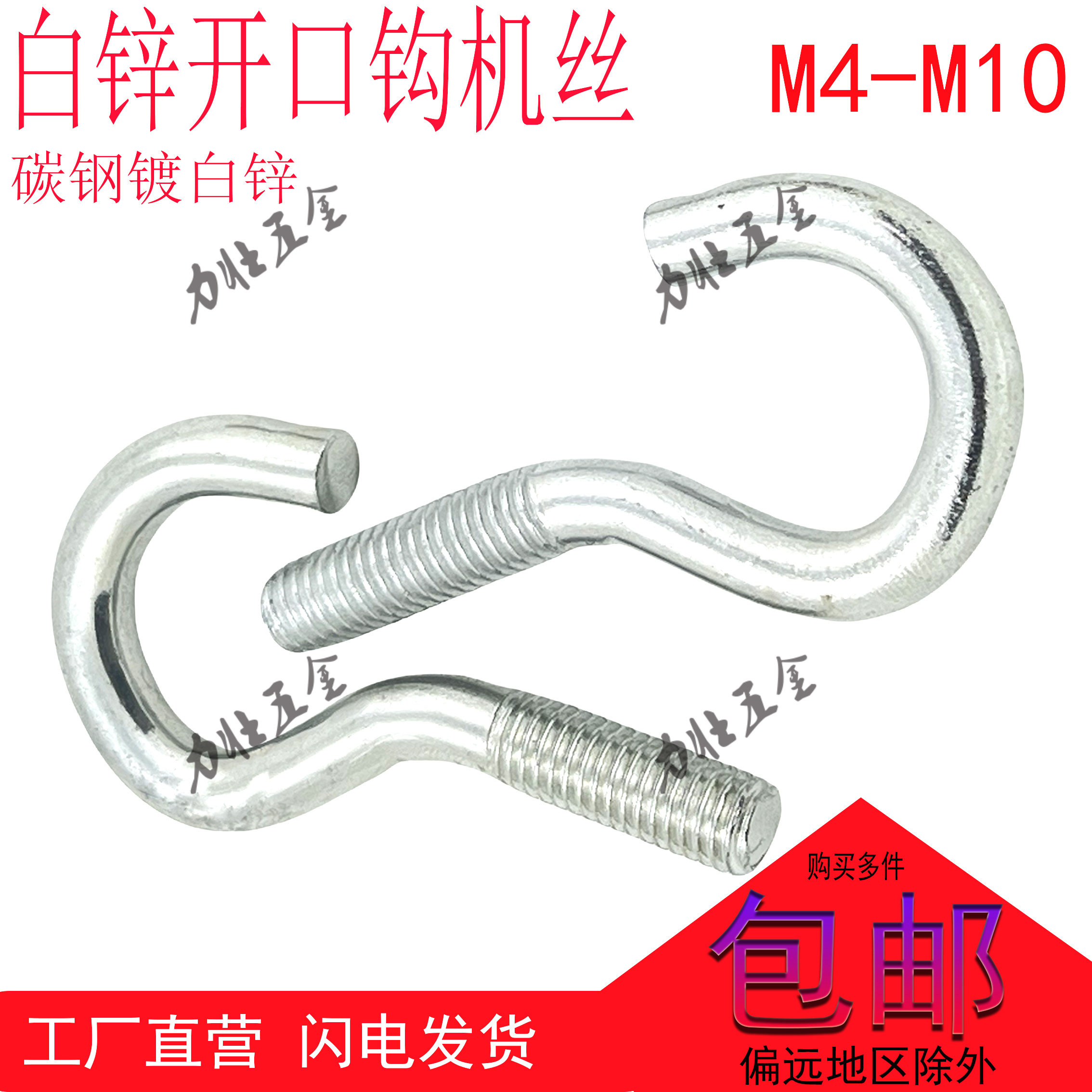 M4-M12镀锌白锌开口钩螺丝问号挂钩羊眼螺栓吊环铁丝勾子