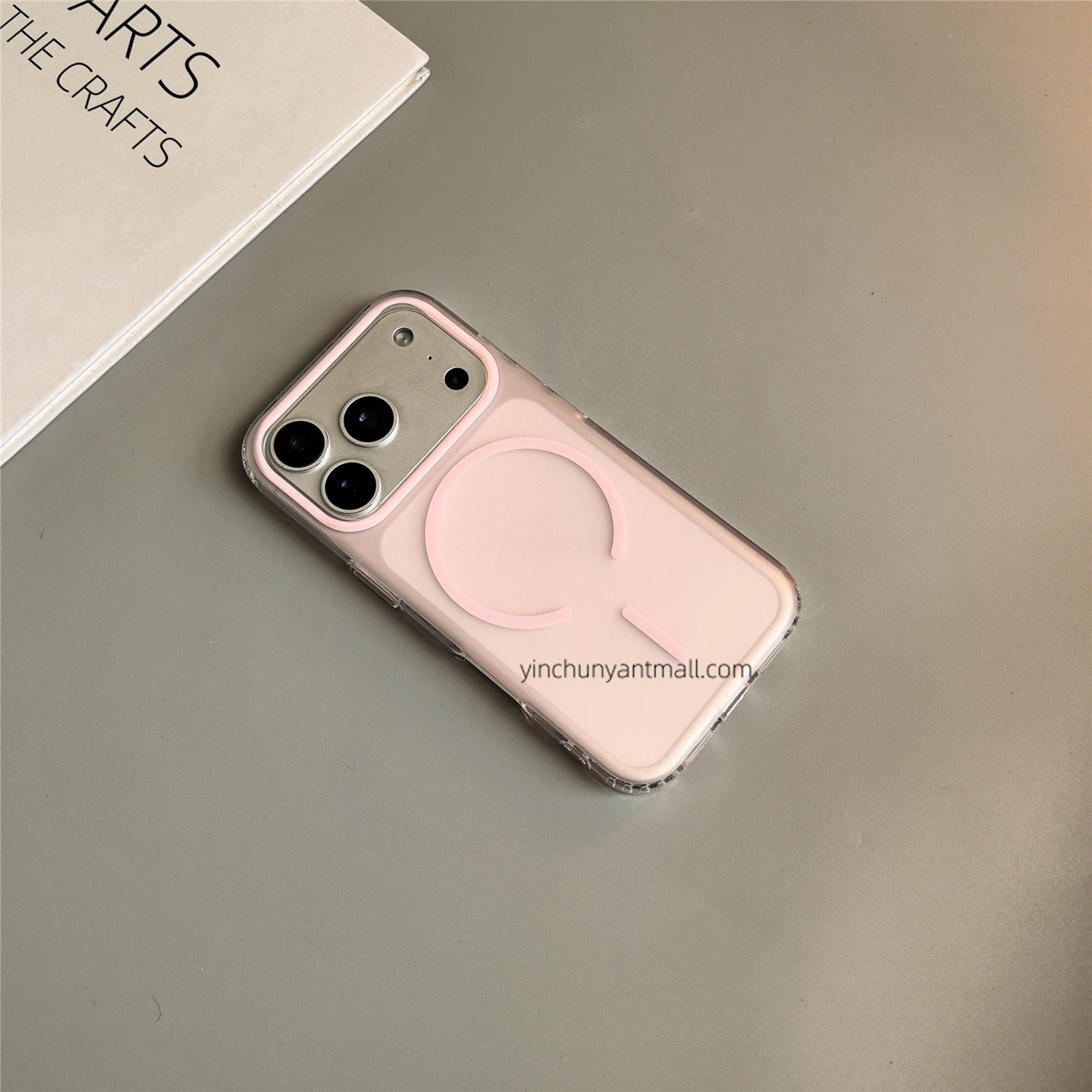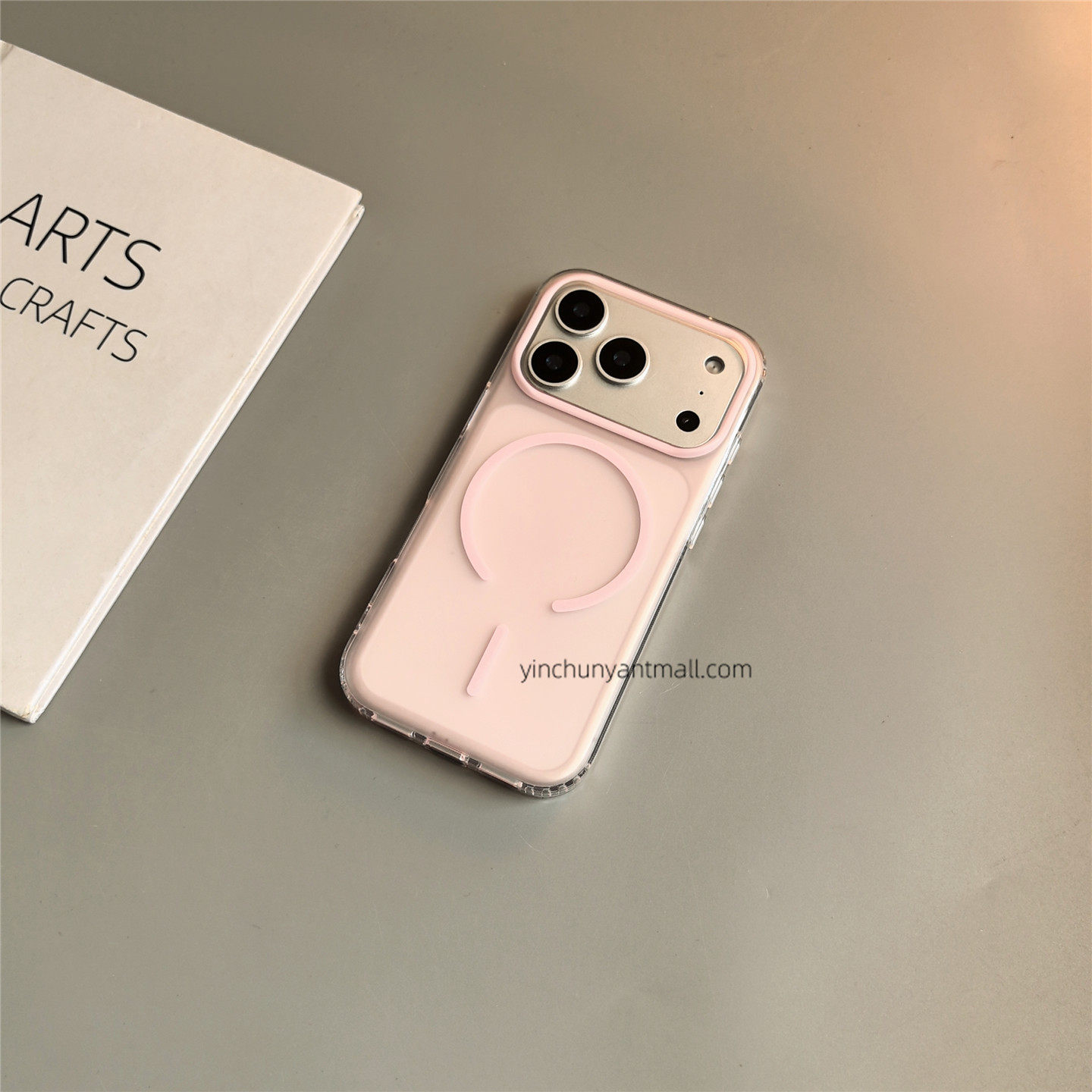 砂粉细圈磁吸适用苹果17手机壳16Pro透明半软15pro简约16高级感iPhone15防摔14新款17pro全包16promax男女