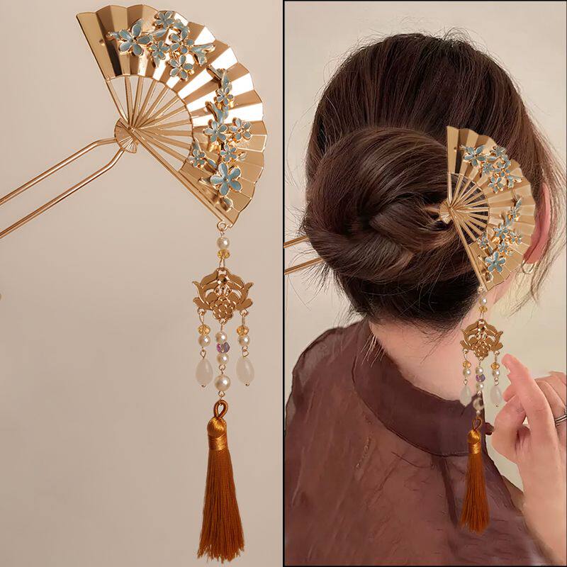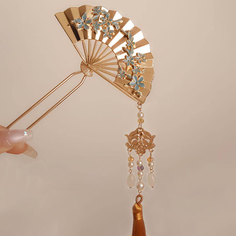 新中式扇子流苏发簪新娘秀禾头饰古风发钗马面裙簪子古典旗袍配饰