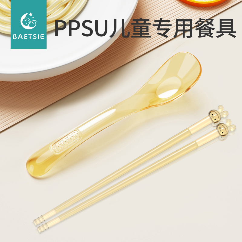 PPSU儿童元宝勺宝宝学吃饭勺子训练自主进食专用勺子筷子餐具套装