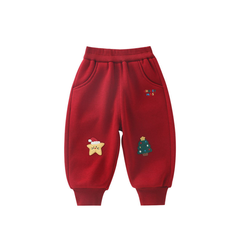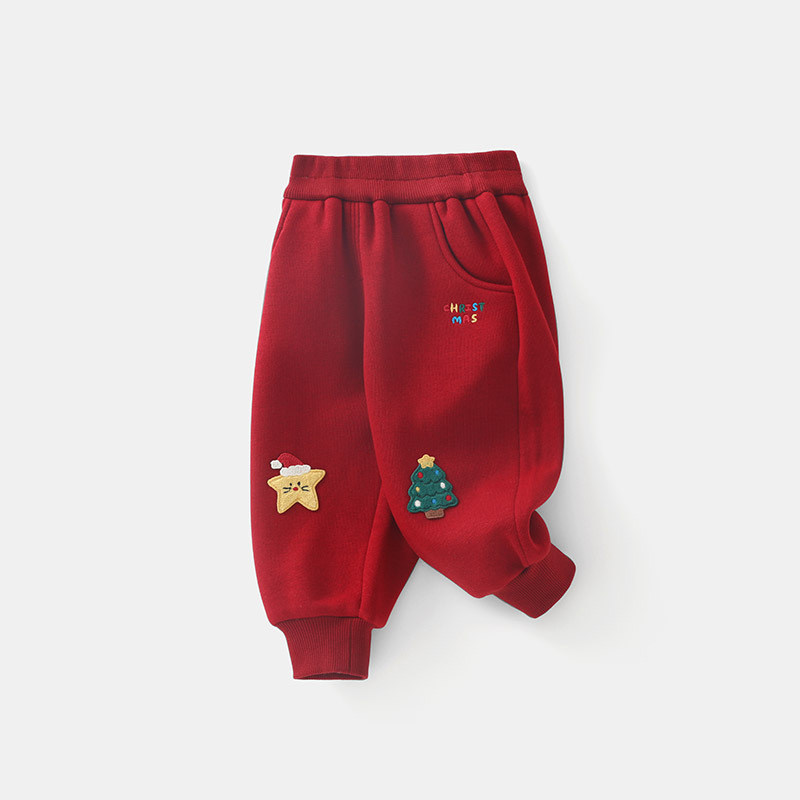 红色加绒宝宝运动裤2025婴儿长裤儿童卫裤a类女童裤子秋冬