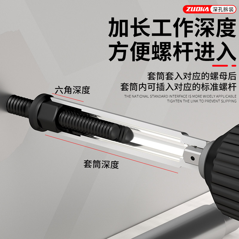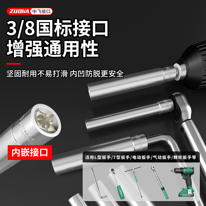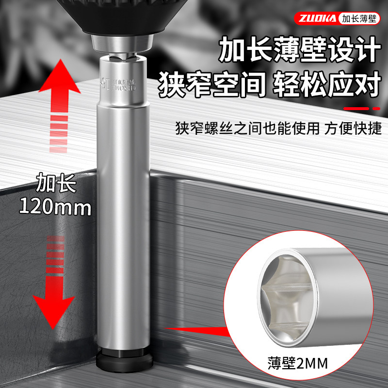 38中飞套筒加长8mm加深内六角套筒头扳手薄壁空心6角长套筒梅花10