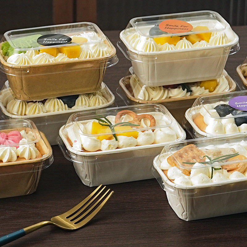 烘焙长方形纸杯蛋糕模具烤枣糕纸托带盖杯一次性烤箱耐高温包装