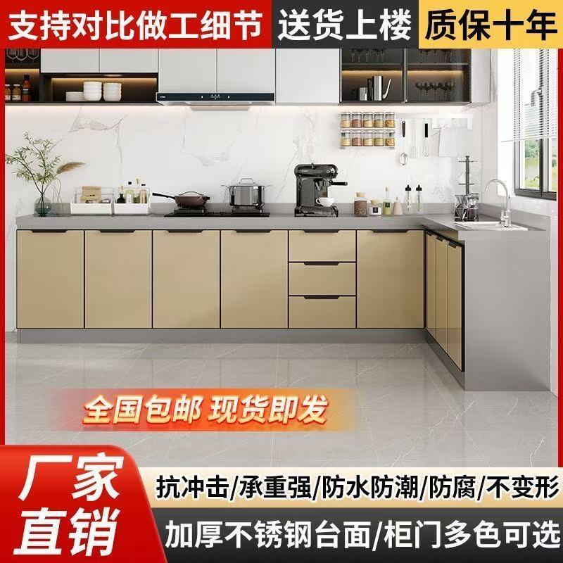 橱柜简易不锈钢灶台柜橱柜一体家用租房用水槽柜农村厨房整体厨柜