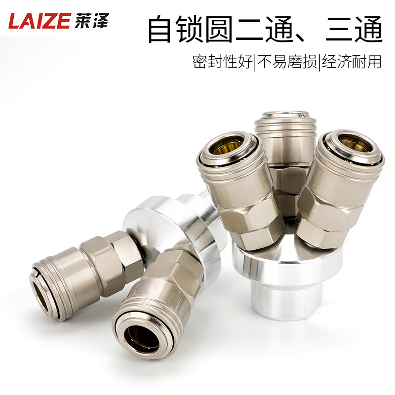 C式气动快速接头自锁圆三通空压机气泵气管工具二通软管公母快插
