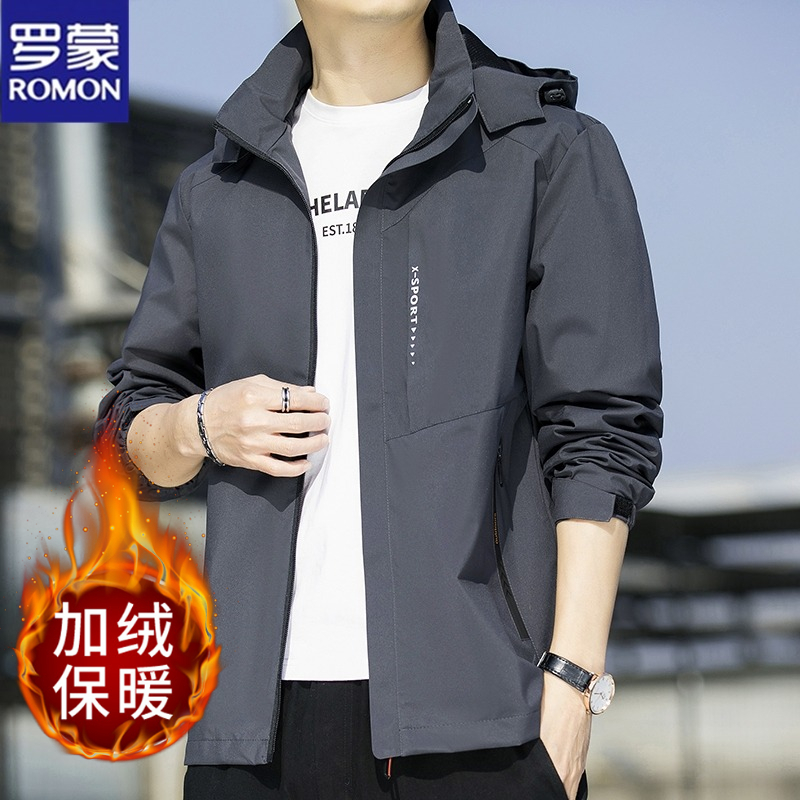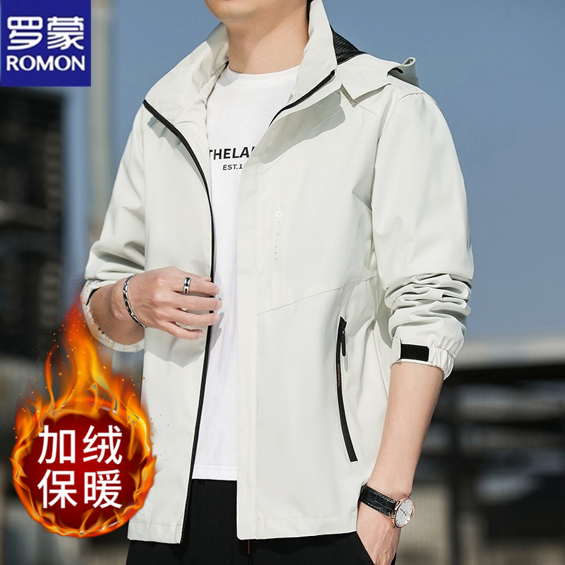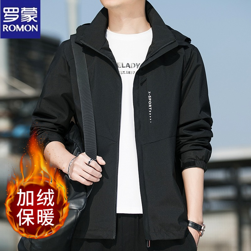 罗蒙男士夹克外套秋冬季新款休闲爆款大码风衣加绒加厚冲锋衣男士