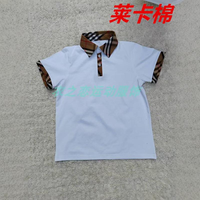 夏季新款黄格子领袖中小学生运动休闲T恤珠地棉