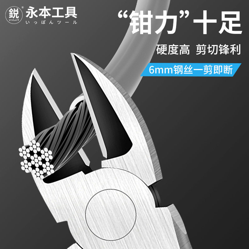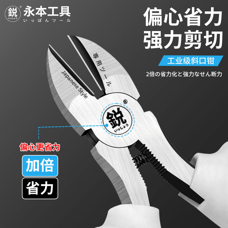 日本斜嘴钳9寸多功能铬钒钢剪钢丝省力偏口钳子电工维修工具