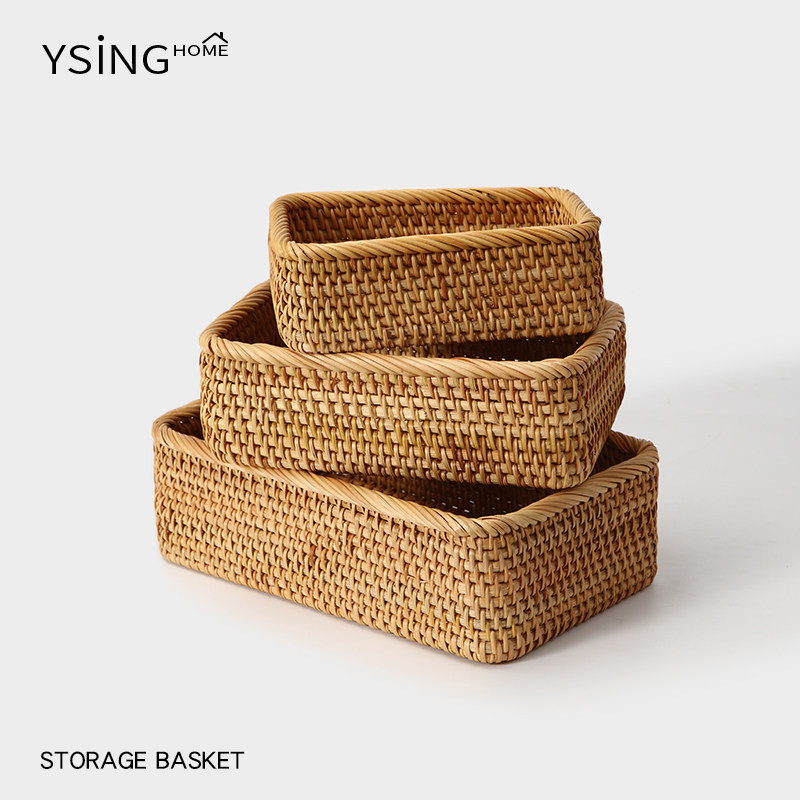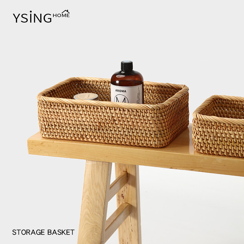 手工编织桌面零食篮子鸡蛋筐小杂物收纳盒长方形整理盒