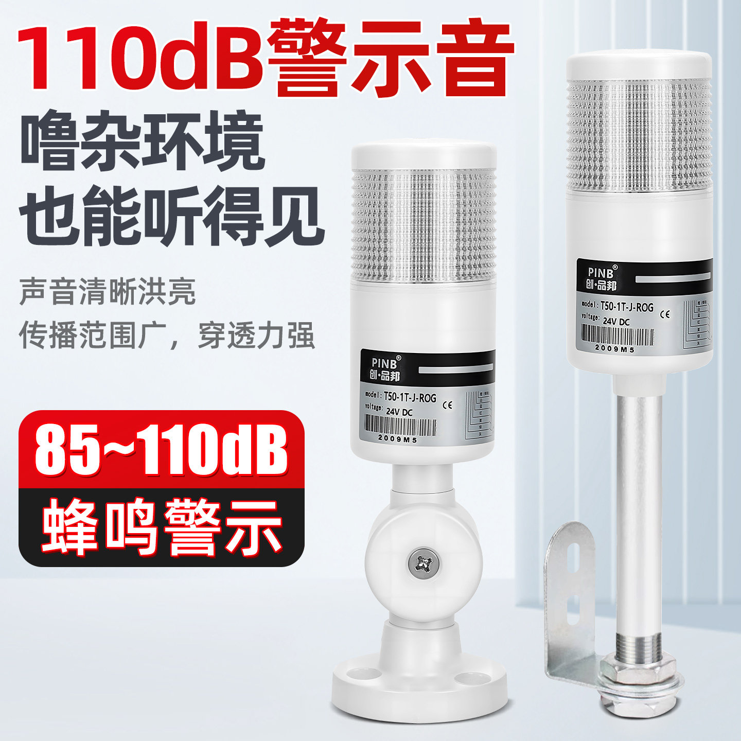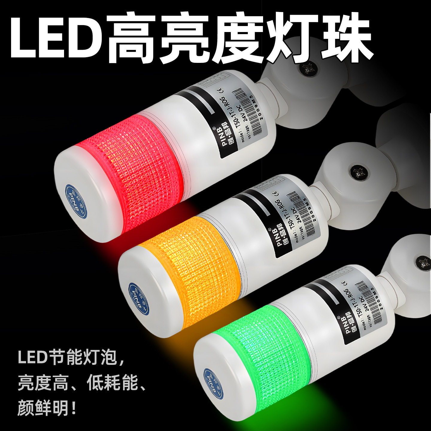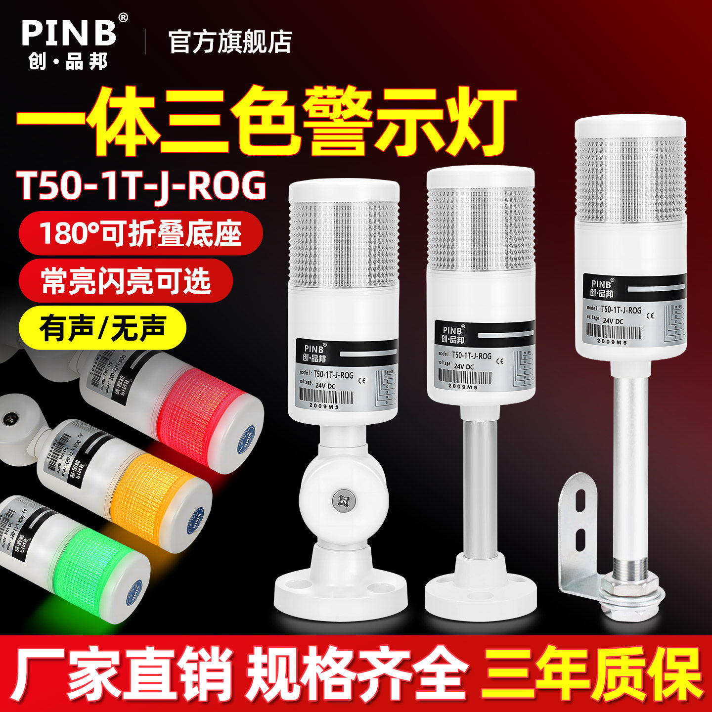 品邦一体三色灯LED机床设备警示灯常/闪亮T50声光报警指示24v220V