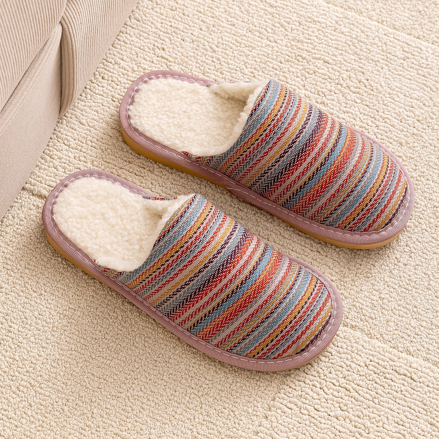 冬季棉麻拖鞋居家布艺毛绒保暖棉拖男女情侣日式室内软底静音防滑