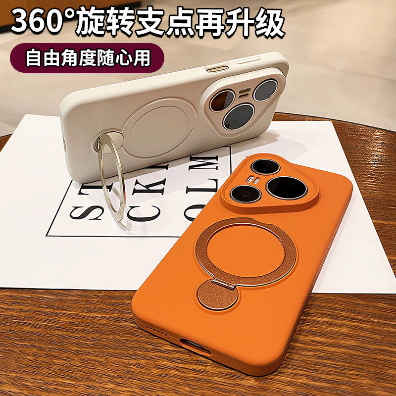360°支点壳适用华为pura80手机壳pura70pro新款旋转磁吸带支架p70pro十+全包镜头液态硅胶防摔套软高级外壳