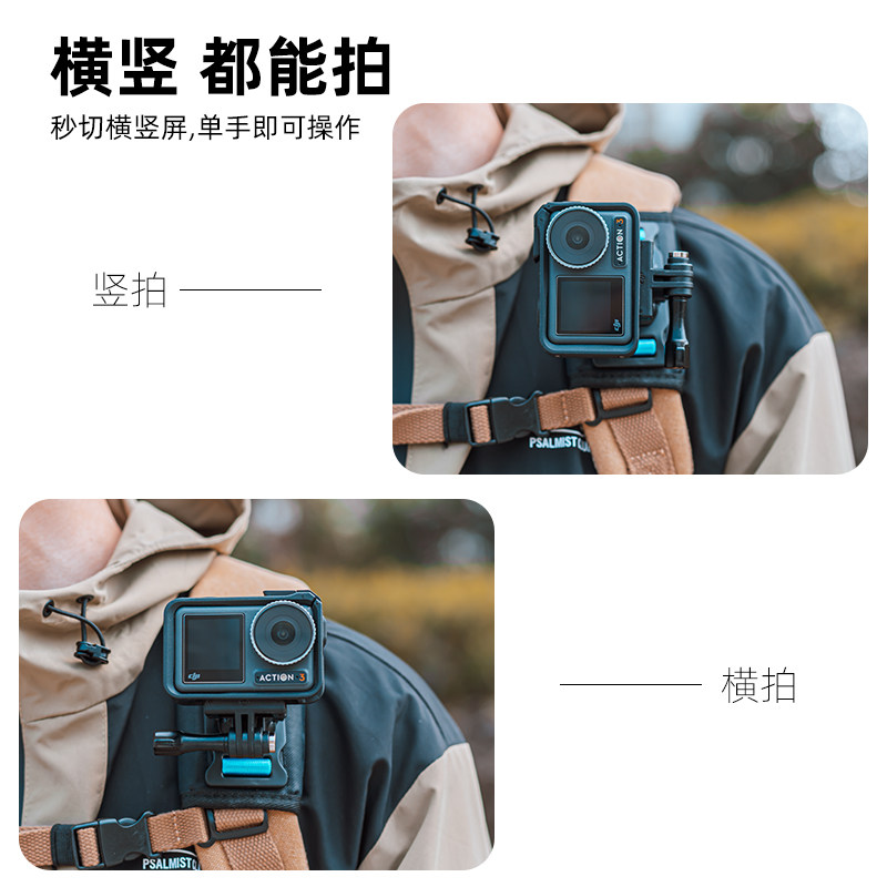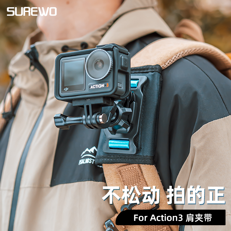 SUREWO运动相机背包夹适用大疆 DJI Action 4/3配件书包固定支架肩带夹第一人称视角拍摄户外直播vlog
