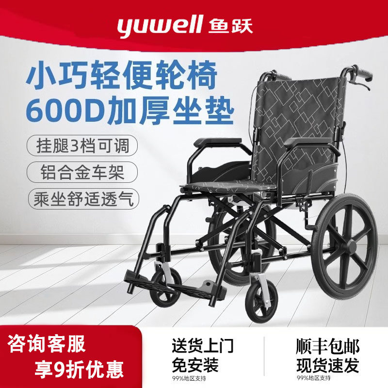 鱼跃铝合金轮椅折叠轻便小型旅行专用手动老年人瘫痪代步手推车