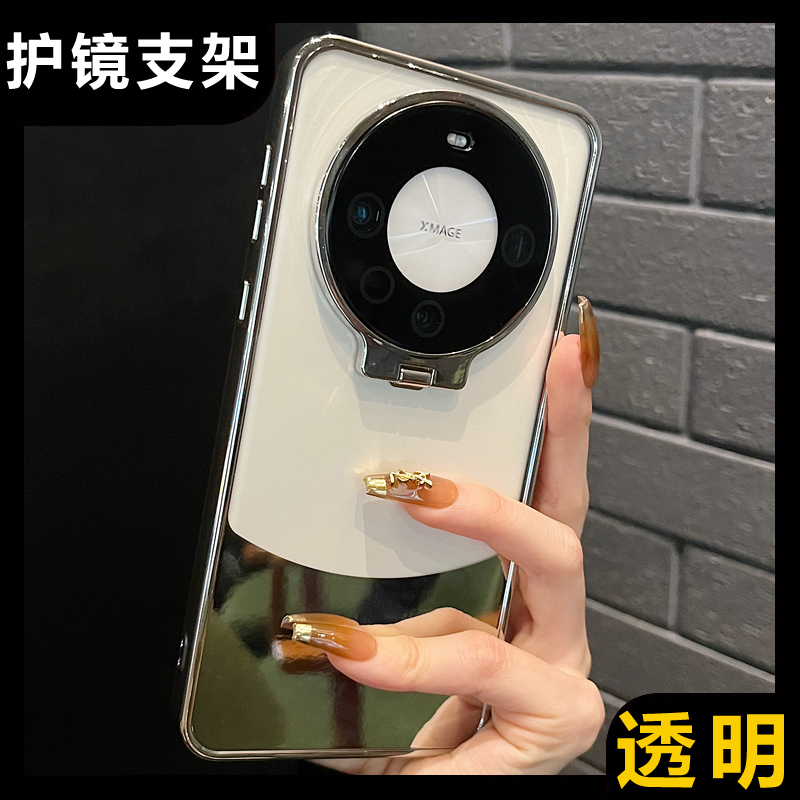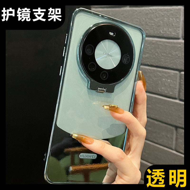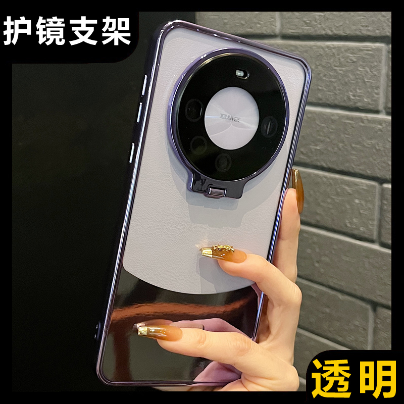适用华为mate60pro+新款手机壳隐形一体翻盖支架mate60情侣高级感电镀镜头膜全包防摔保护套便携男女款软硅胶