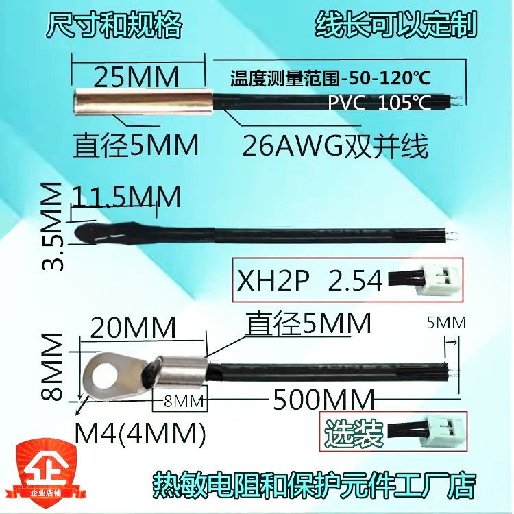 NTC热敏电阻温度传感器空调家用电器感温探头2K5K10K20K50K100K