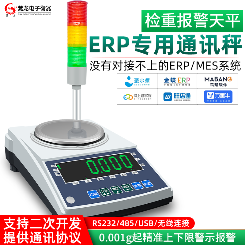 ERP电商称重专用天平电子秤带上下限检重报警灯对接MES系统通讯秤