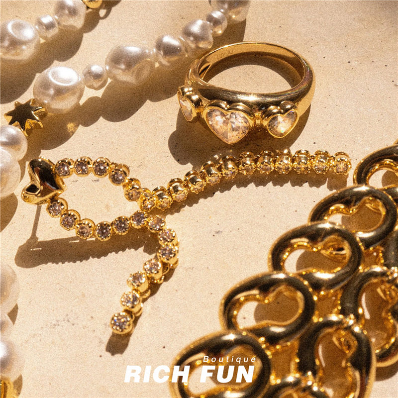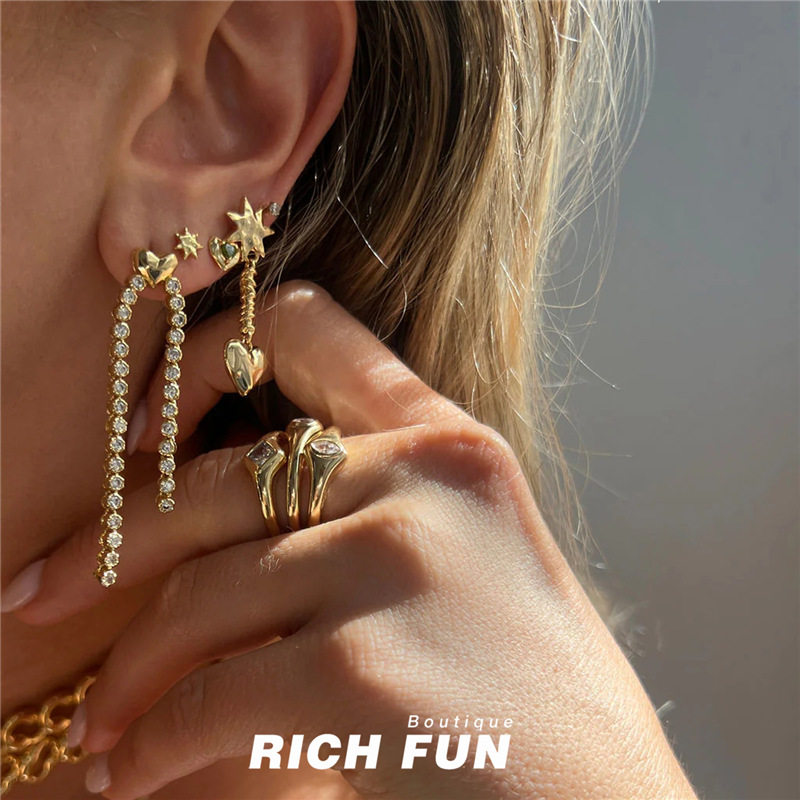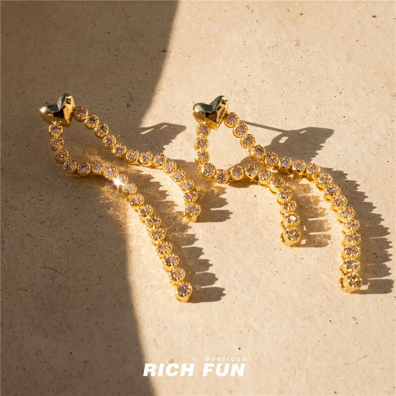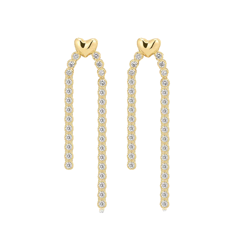 美国LUV AJ小众设计24春夏新款线条美学镀金爱心镶钻璀璨耳环耳饰