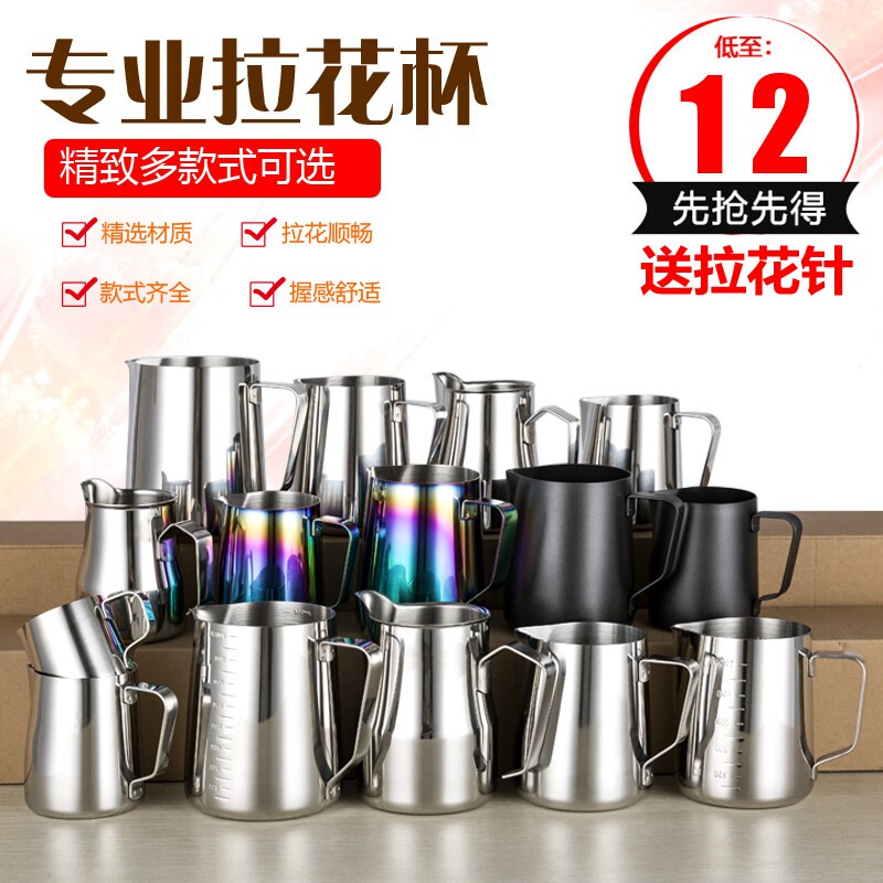 拉花杯不锈钢拉花缸咖啡奶泡壶 拉花缸 尖嘴 花式咖啡模具600/350