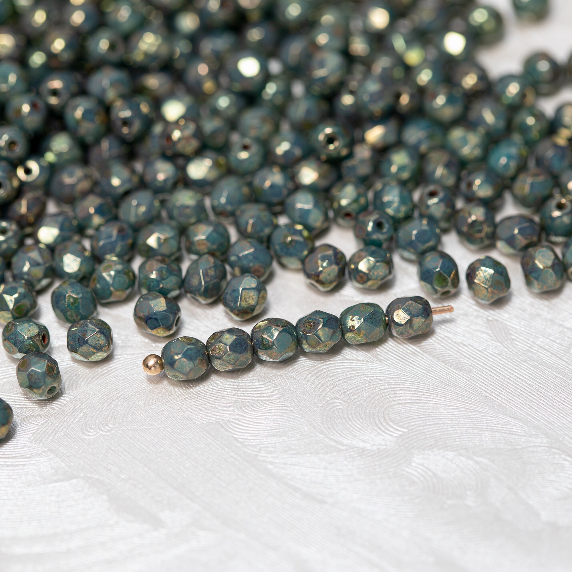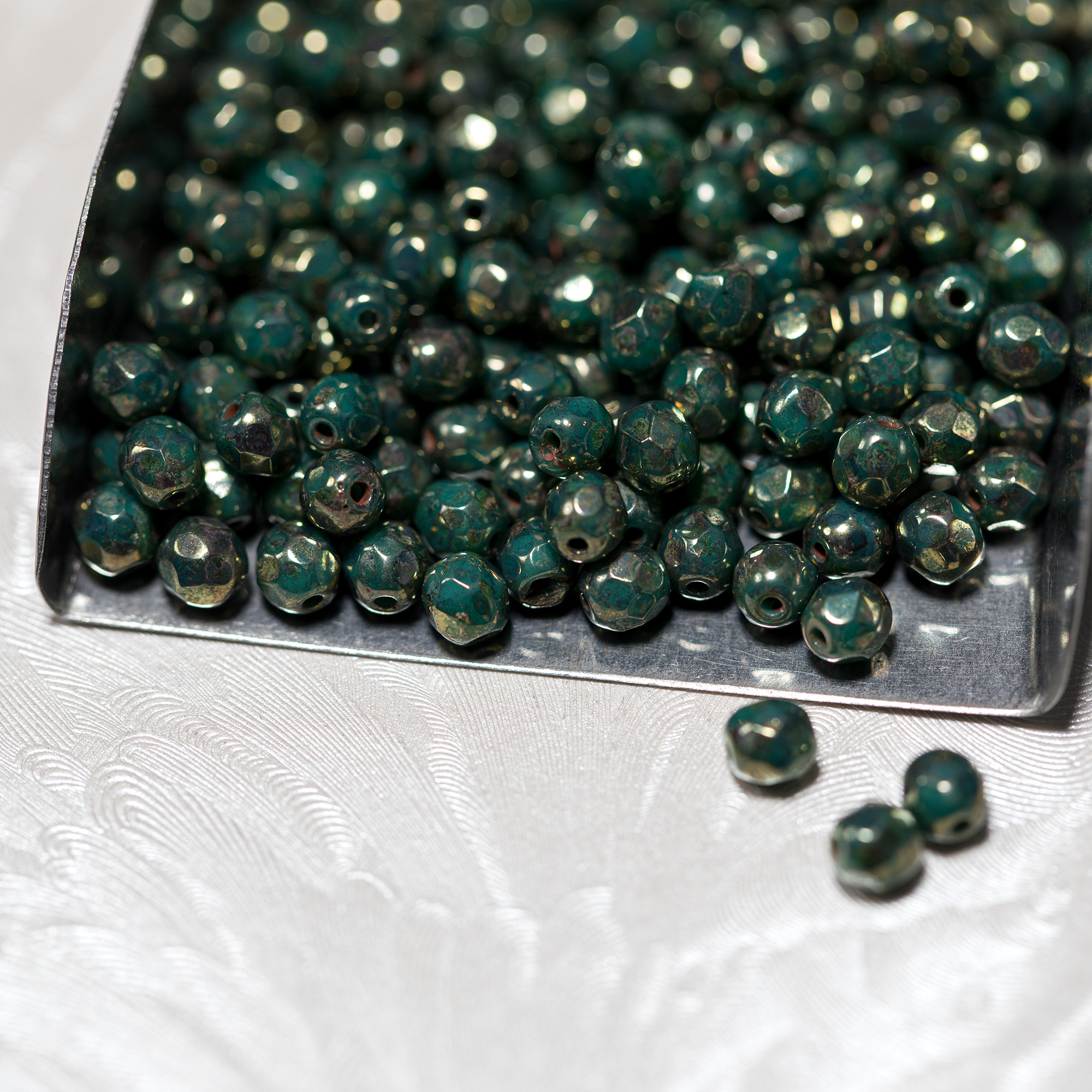 4mm火磨珠100颗 绿松青铜毕卡索进口捷克菠萝珠串珠法绣枣珠diy