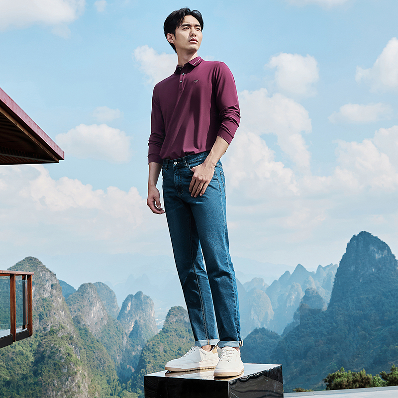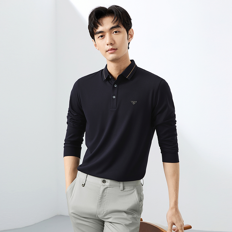 柒牌男装长袖POLO衫男舒适新款商务通勤上班休闲翻领打底上衣