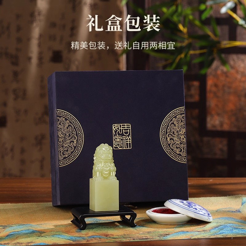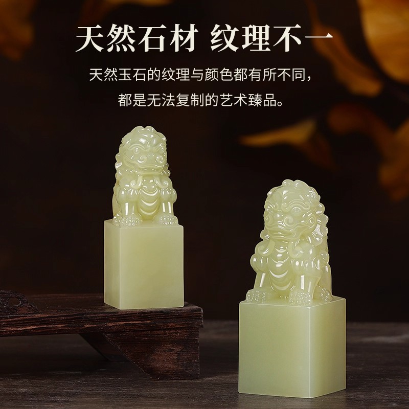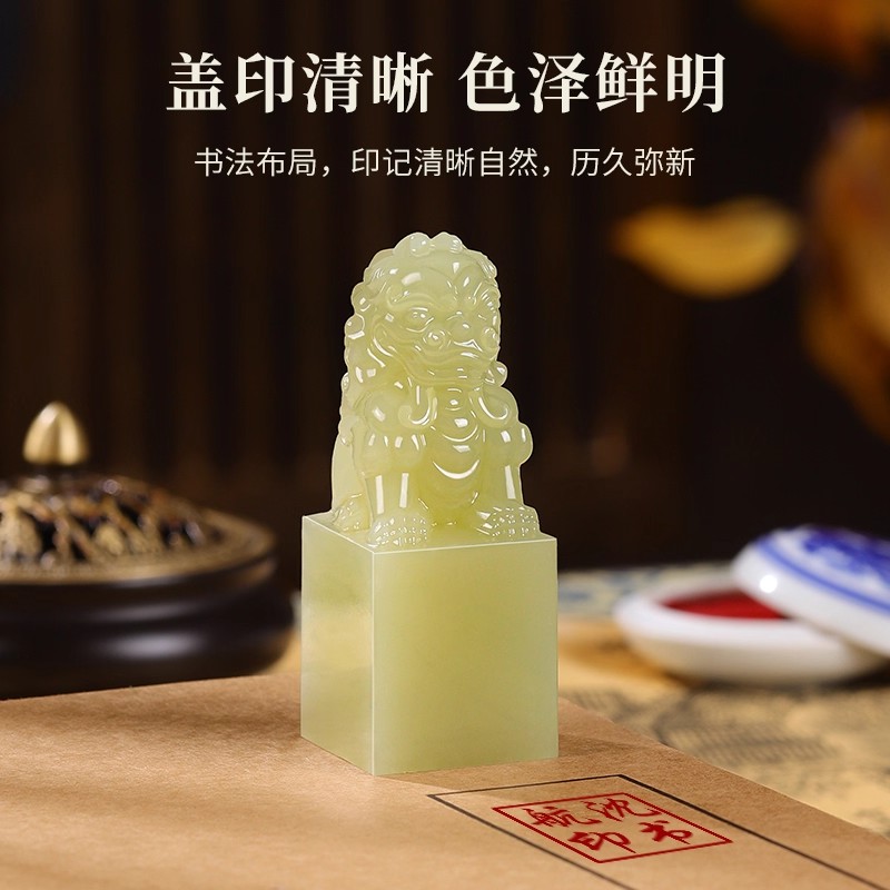 威弗列德玉石印章定制私人书法国画盖章古兽狮子天然青玉石狮印章