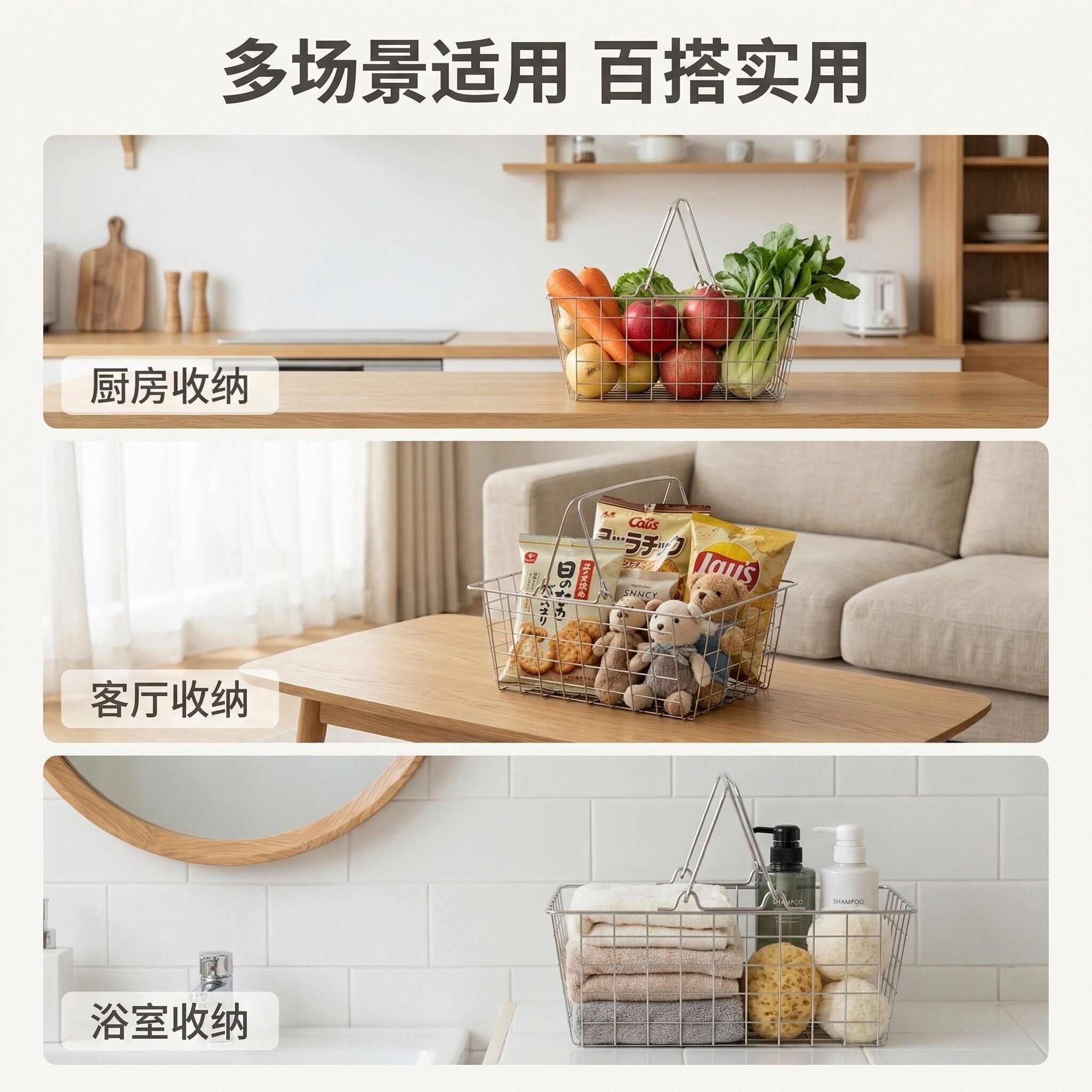 日式简约金属收纳篮多功能整理收纳筐家用小储物篮购物篮