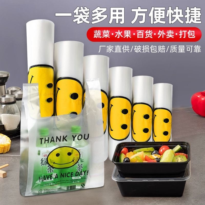 透明笑脸塑料袋批发加厚方便袋外卖打包食品厂家直销