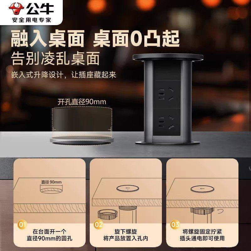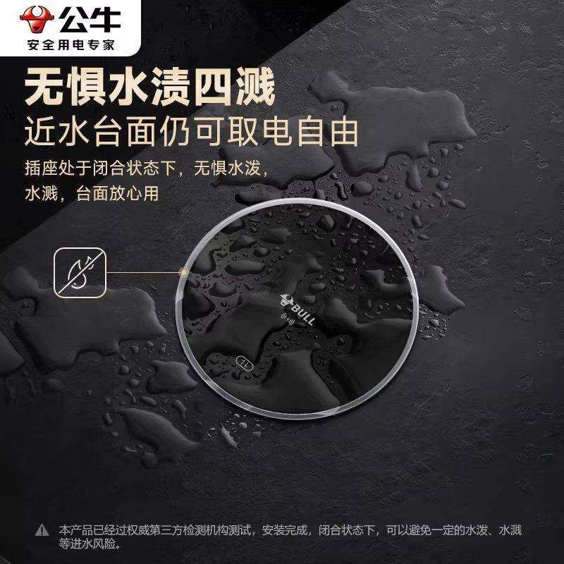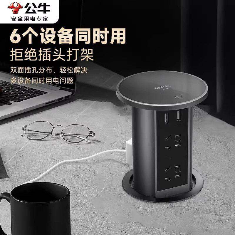 公牛升降插座圆形桌面嵌入式厨房自动智能插排隐藏式桌面岛台插排