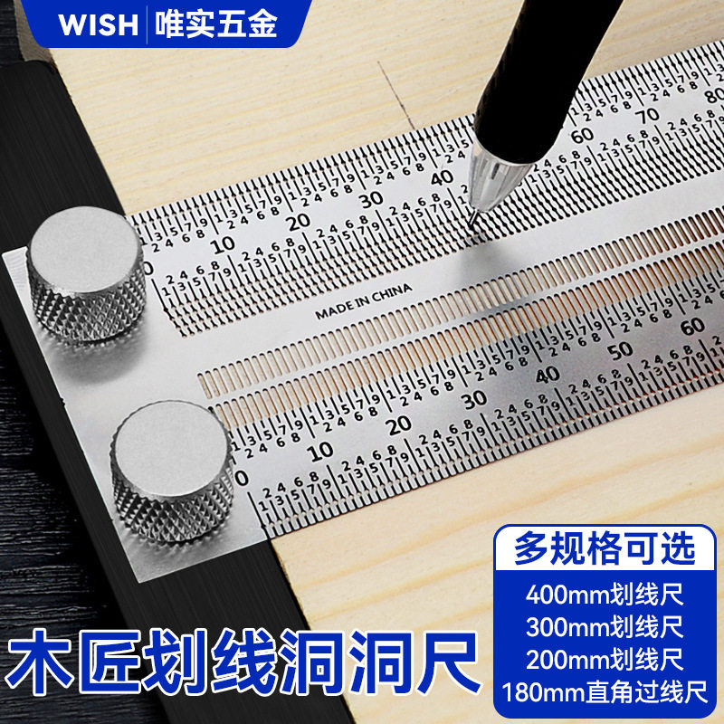 木工洞洞尺划规木匠划线标记尺子木工专用工具不锈钢过线尺孔尺